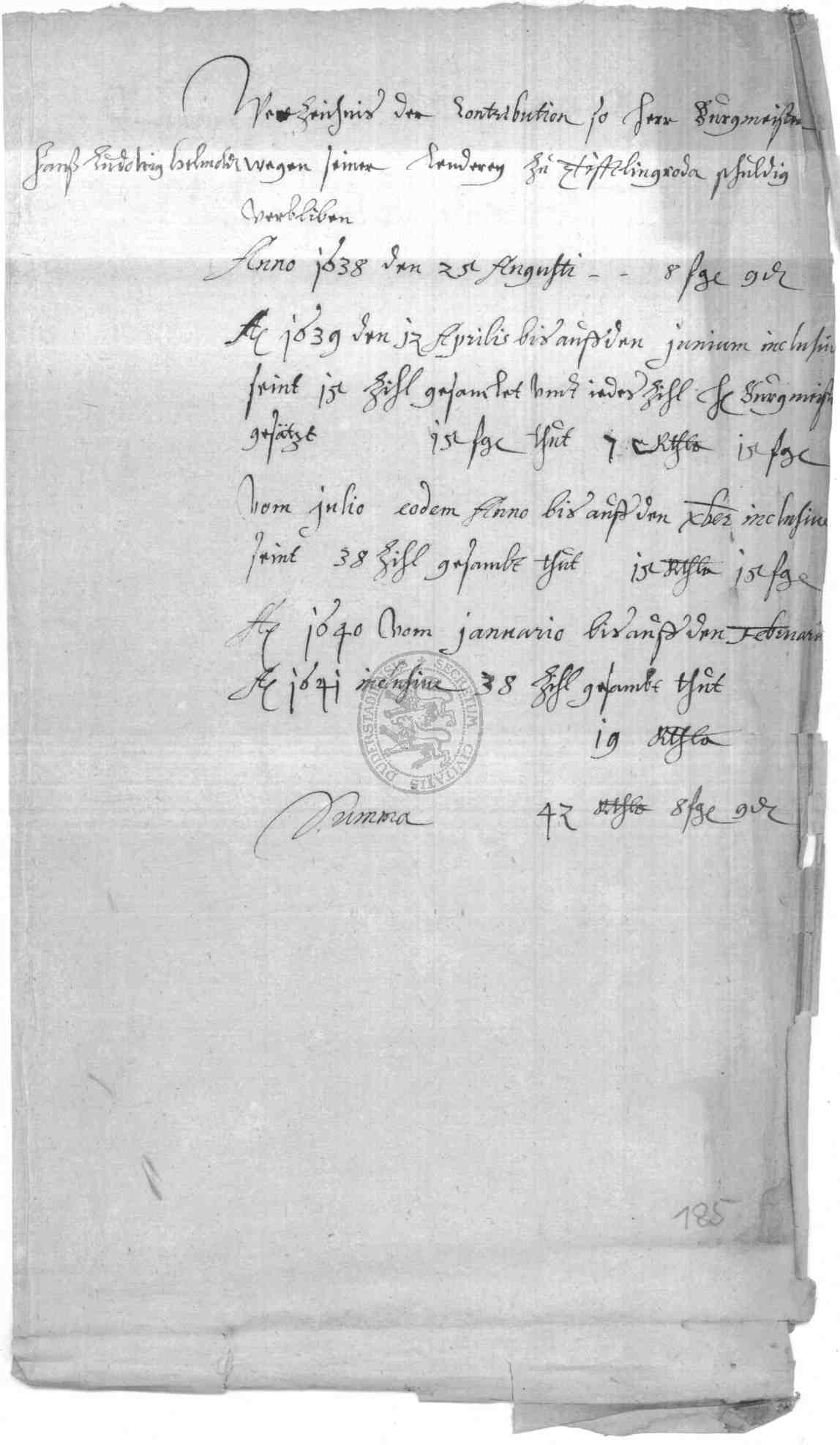 Rep 10 - Rechnungsbuch für eine Schatzung [o. Titel] |