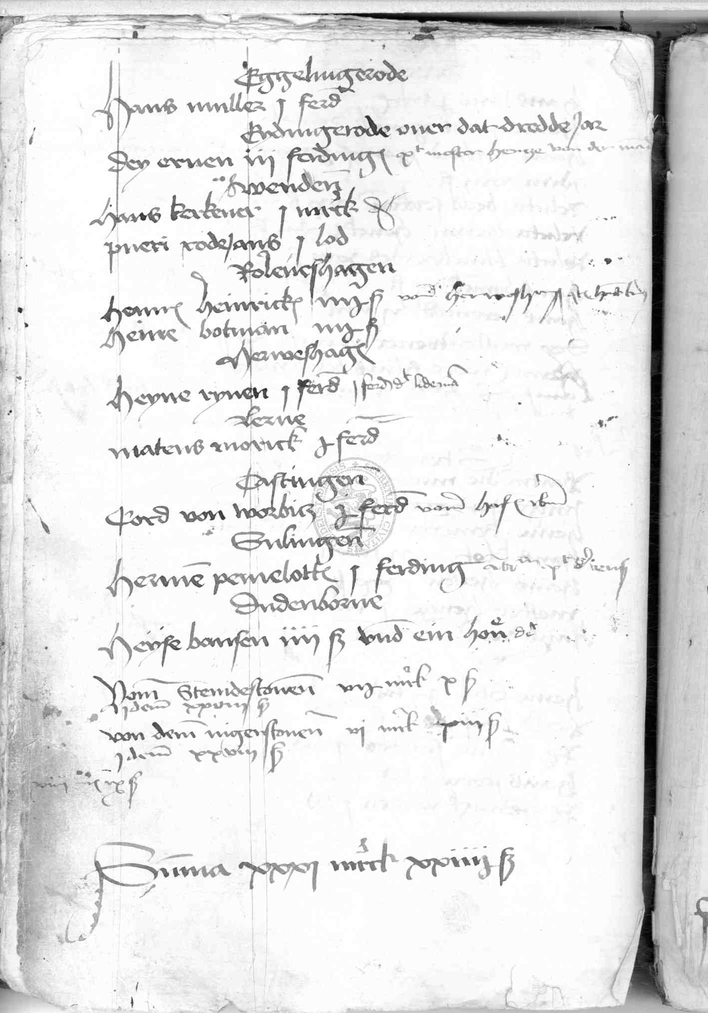 | Subrubrum: | Kydingerode over dat dredde jar |