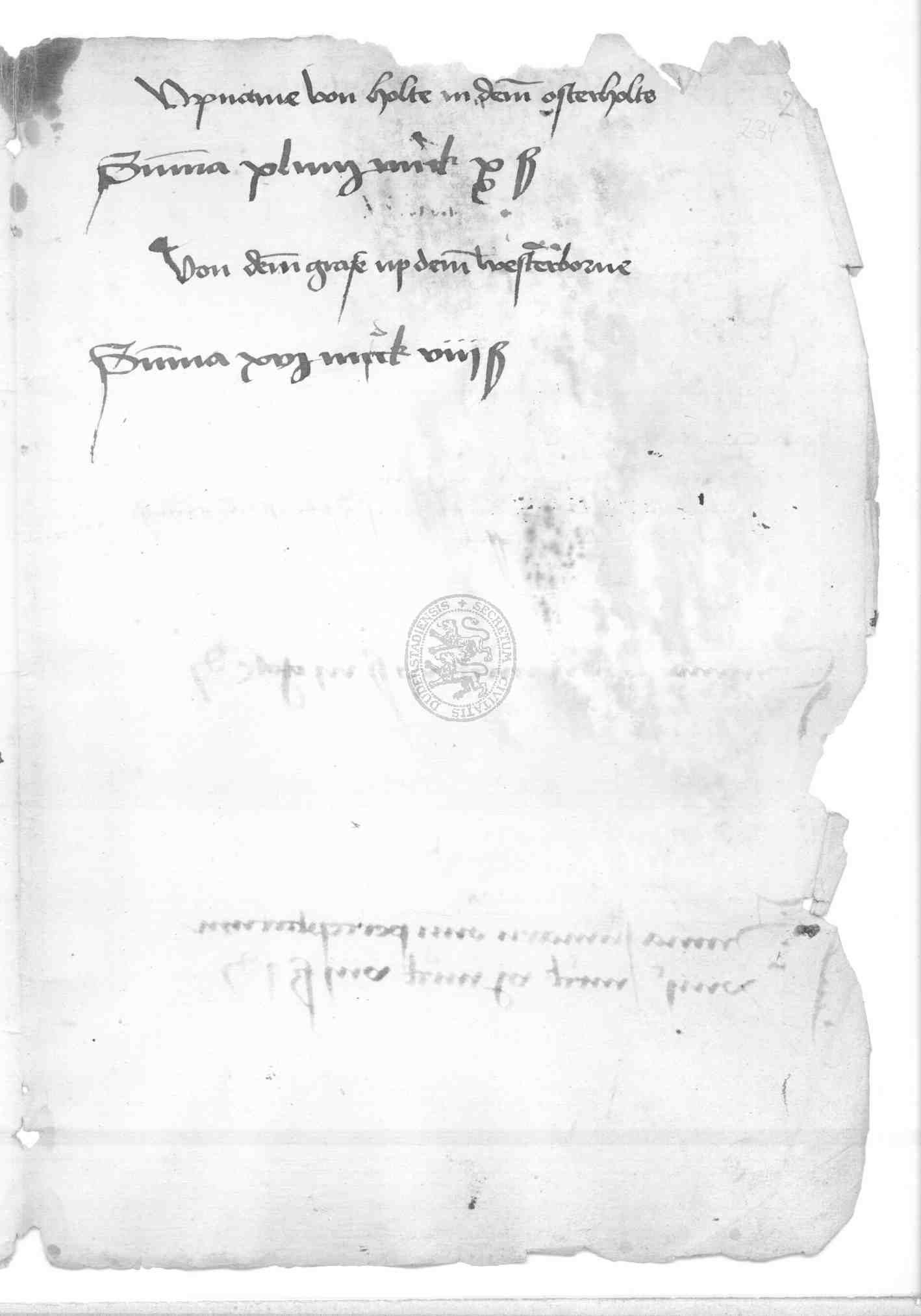 | Rubrum: | Upname von holte in dem Osterholte |
