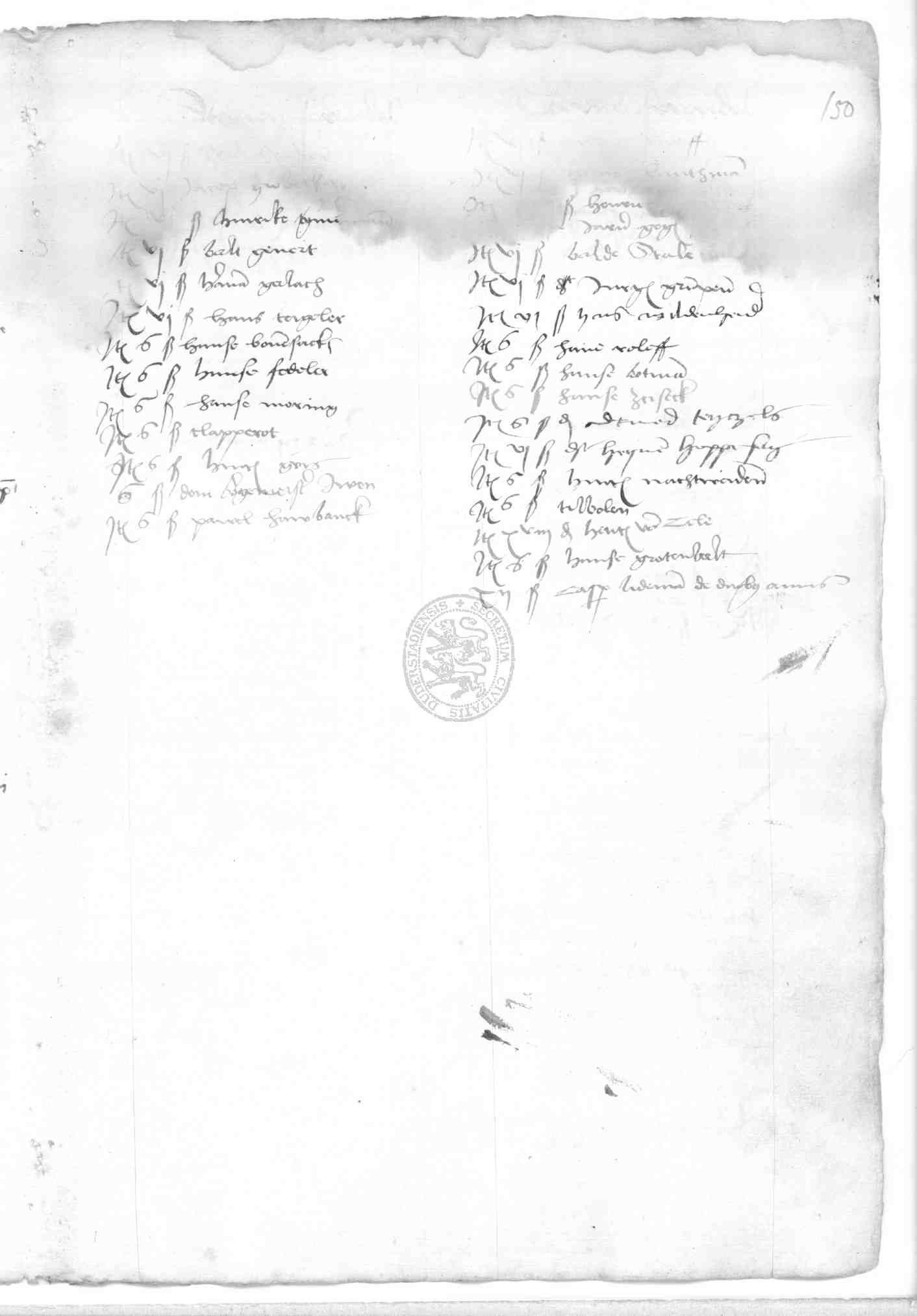 | Rubrum: | nicht lesbar, Wasserschaden [Fortsetzung von fol. 149v] |