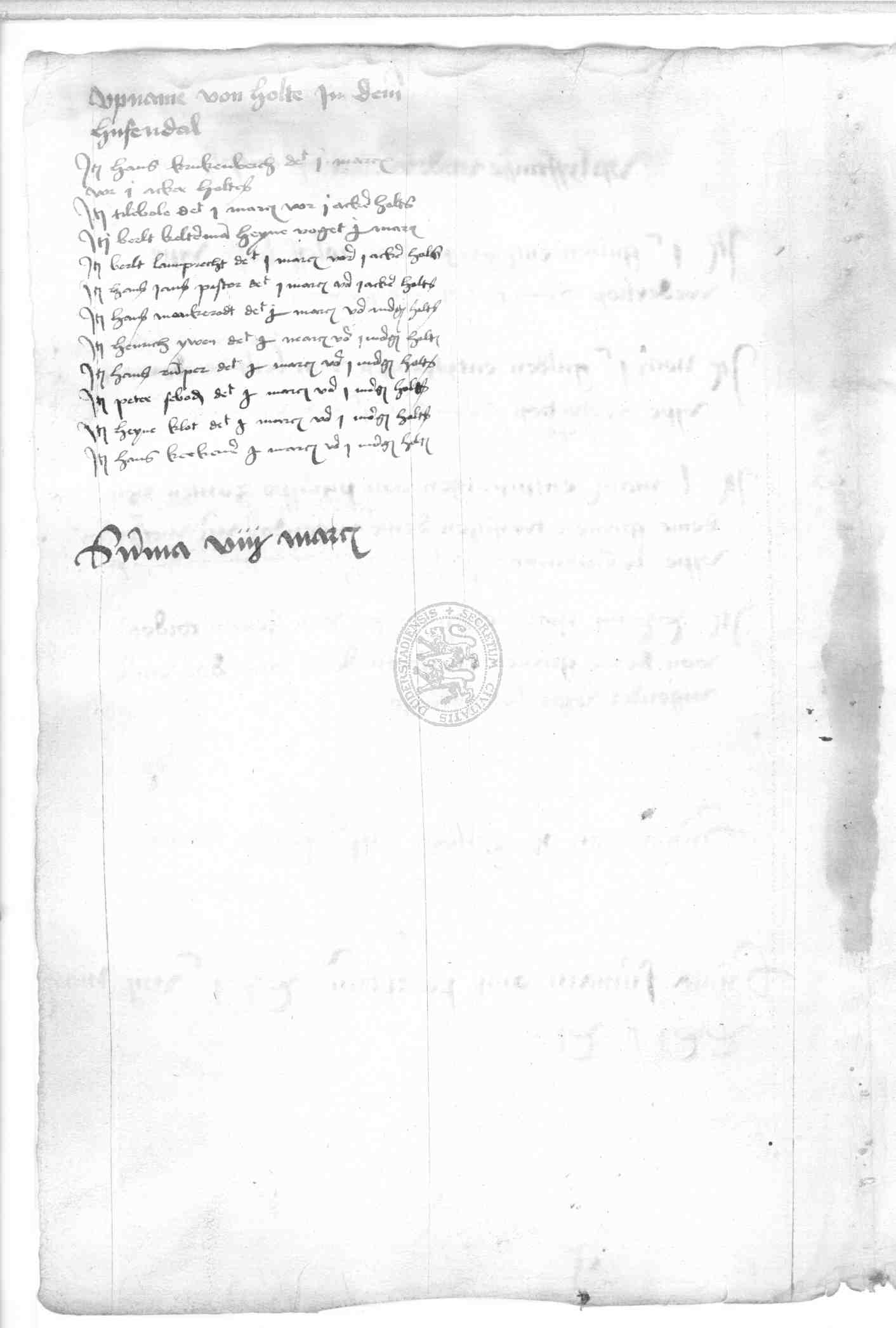 | Rubrum: | upname von holte in dem hufendal |