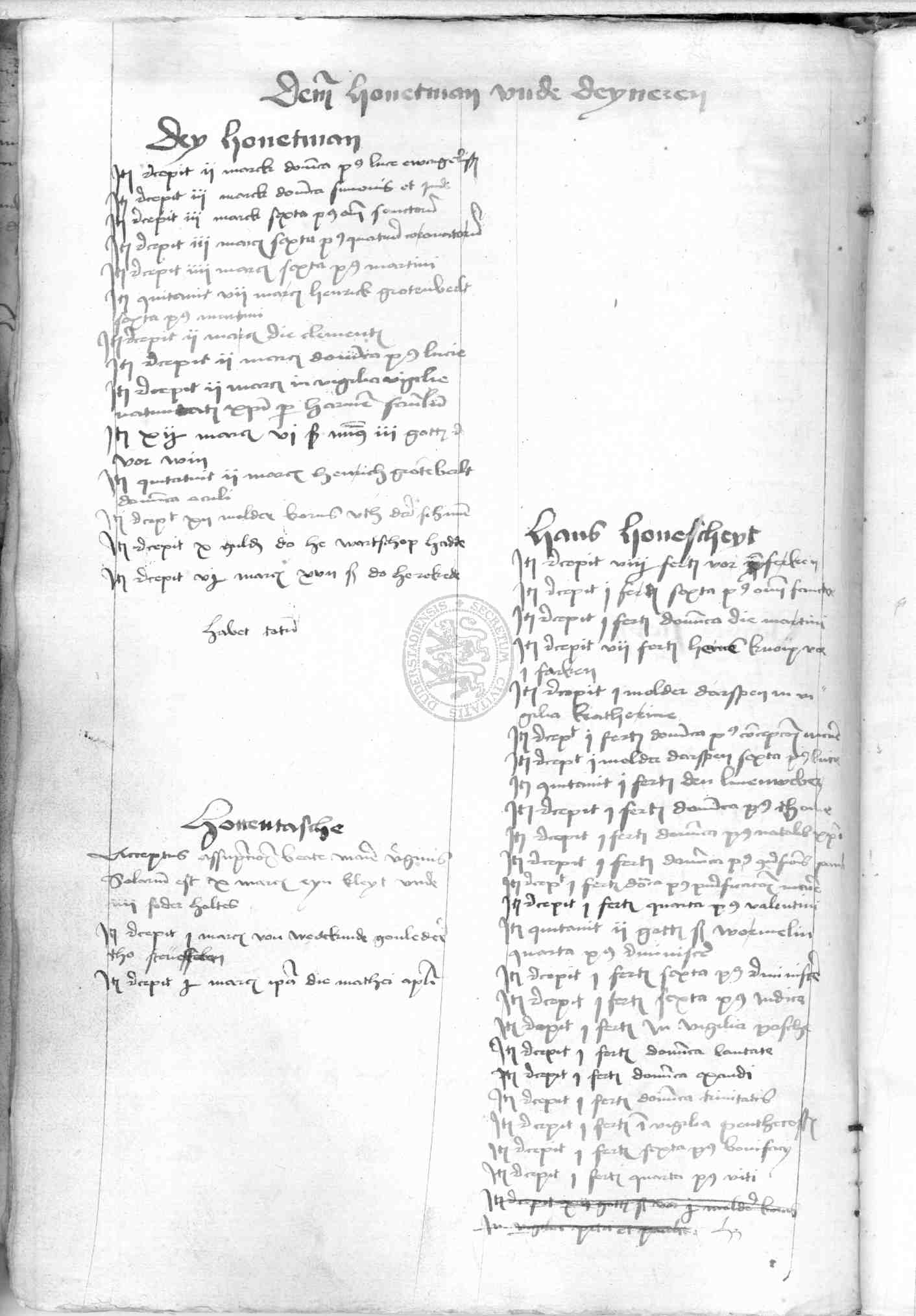 | Rubrum: | deme hovetman unde deyneren |
