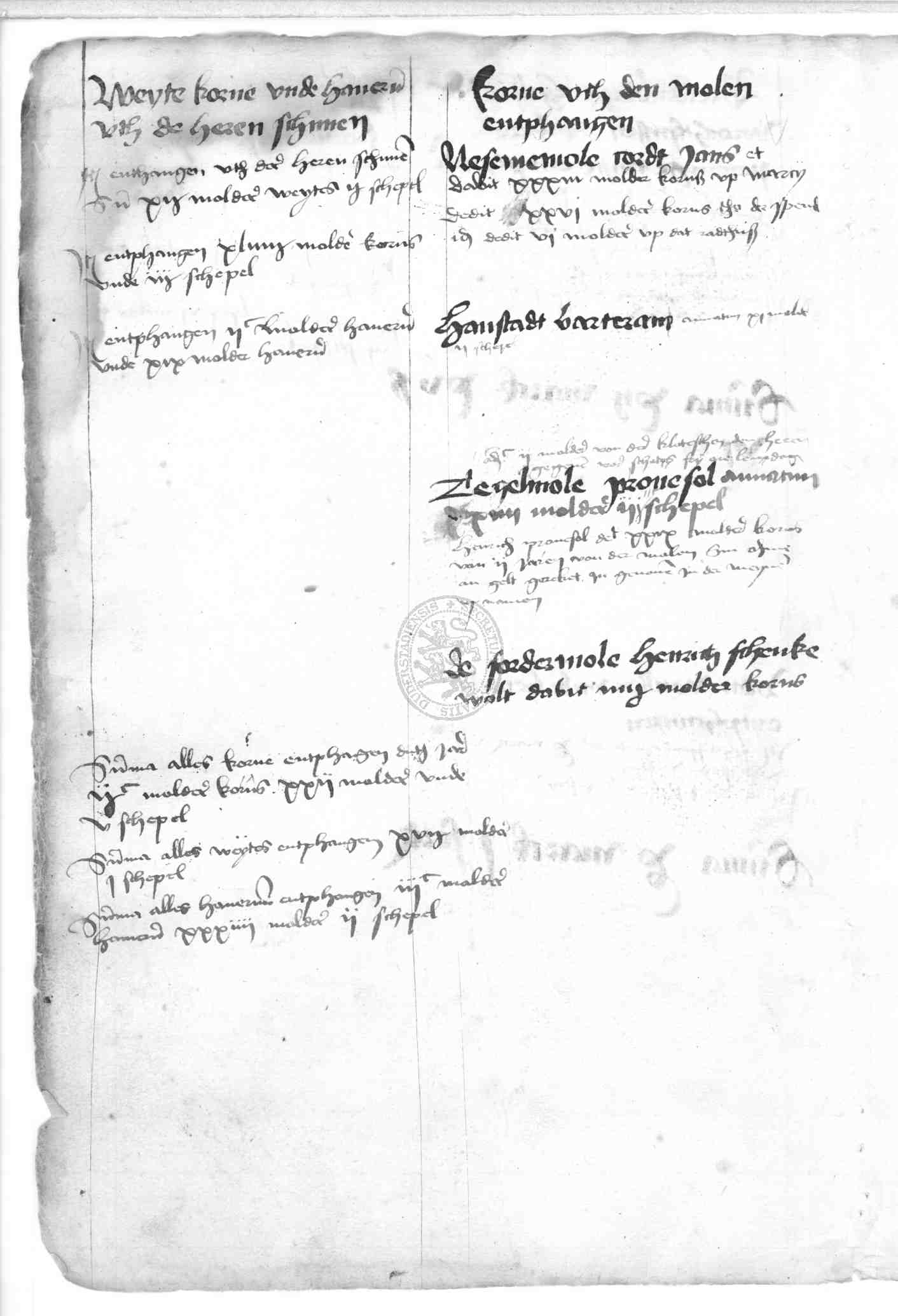 | Rubrum: | korne uth den molen entphangen |