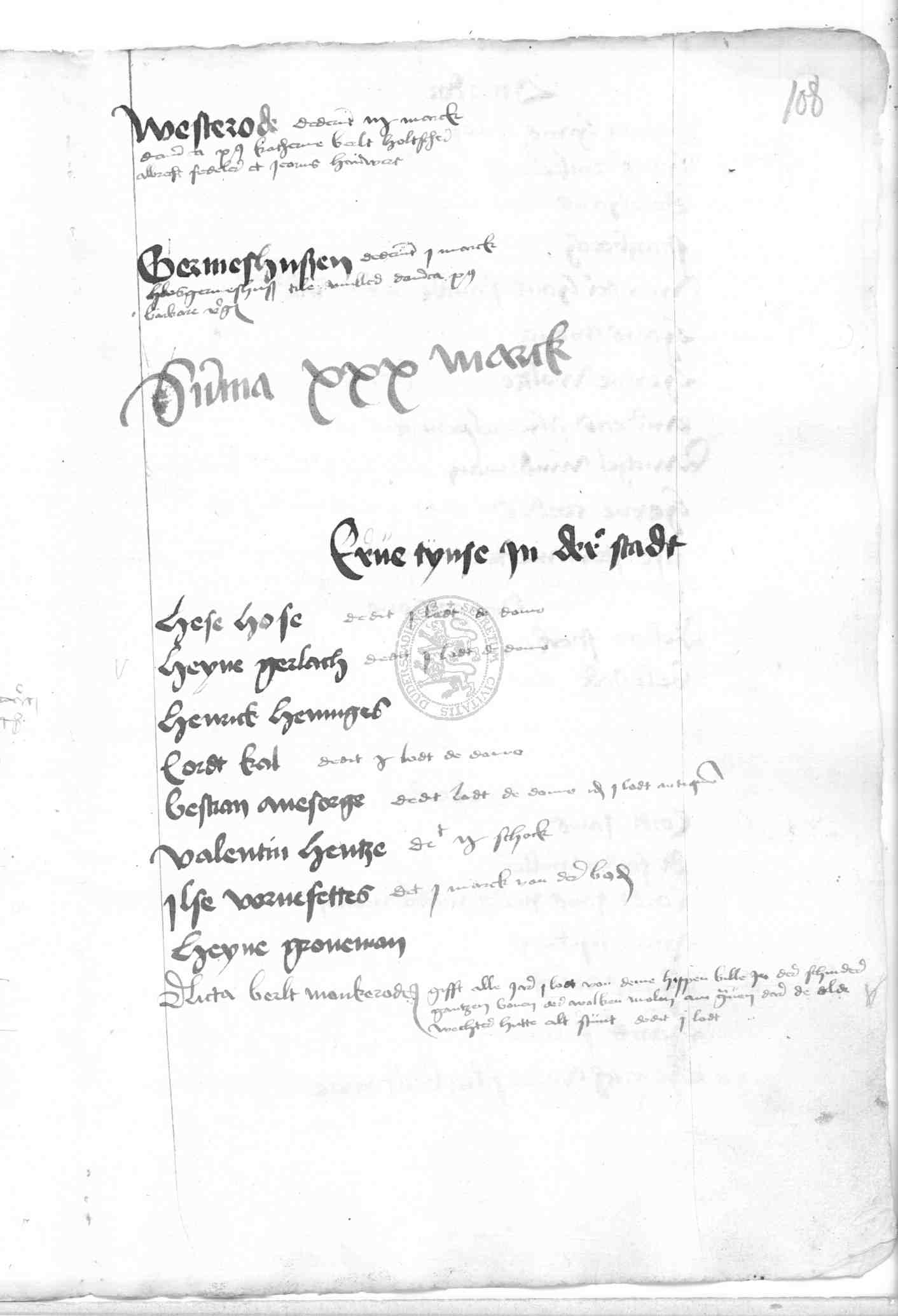 | Rubrum: | erve tynse in der stadt |