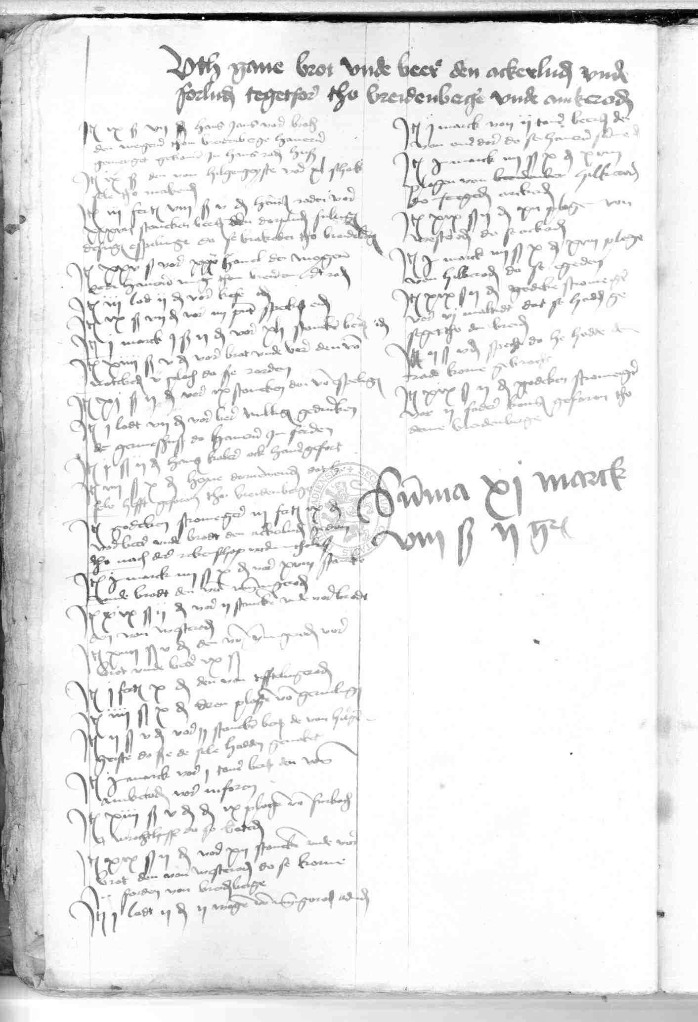 | Rubrum: | uth gave brot unde beer den ackerluden unde forluden tegetforer tho Breidenberge unde Amkerode |