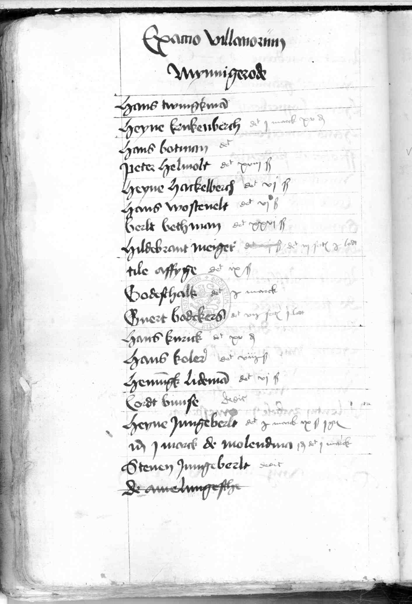 | Rubrum: | exactio villanorum Mynnygerode |