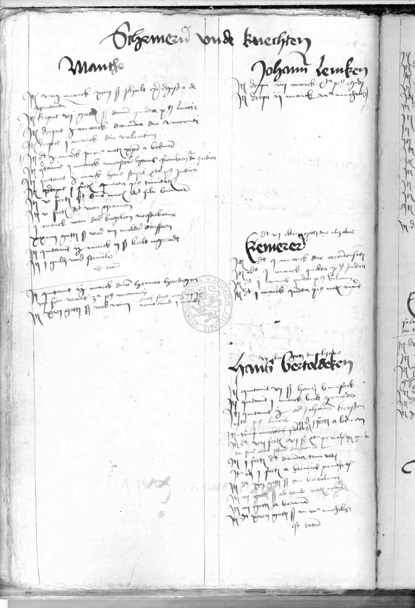 | Rubrum: | scriveren unde knechten |