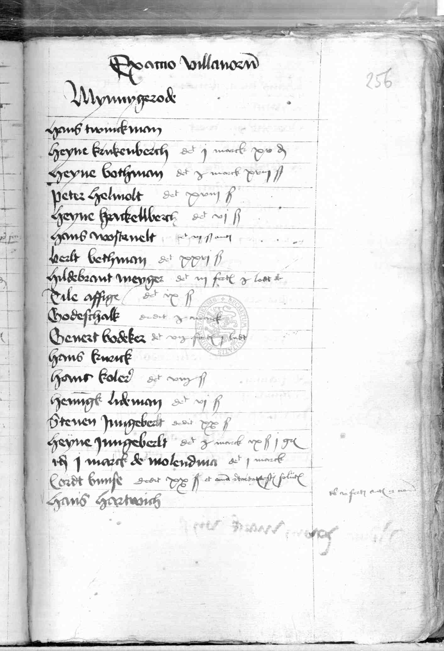 | Rubrum: | exactio villanorum Mynnygerode |