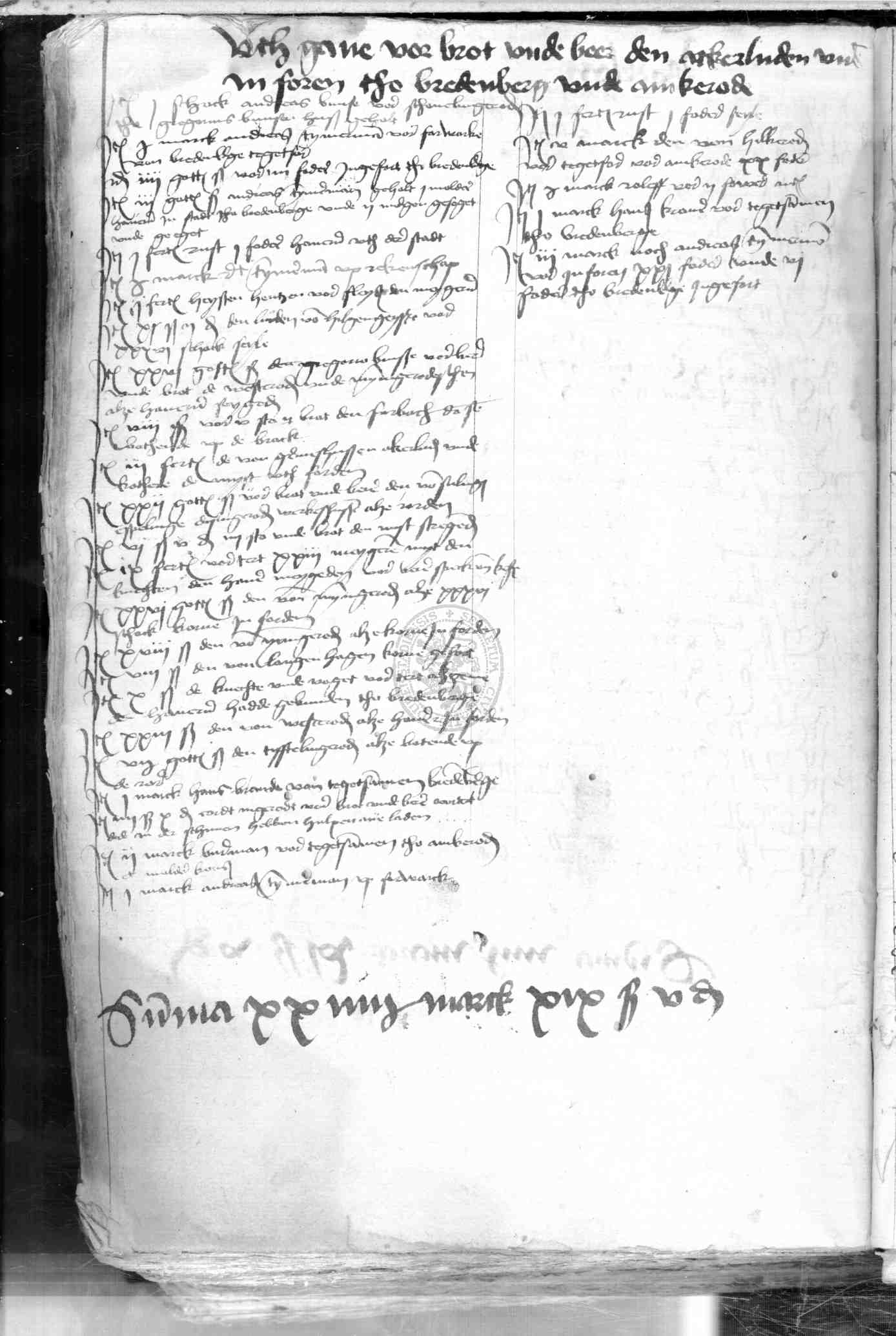 | Rubrum: | uthgave vor brot unde beer den ackerluden unde inforen tho Bredenberge unde Amkerode |