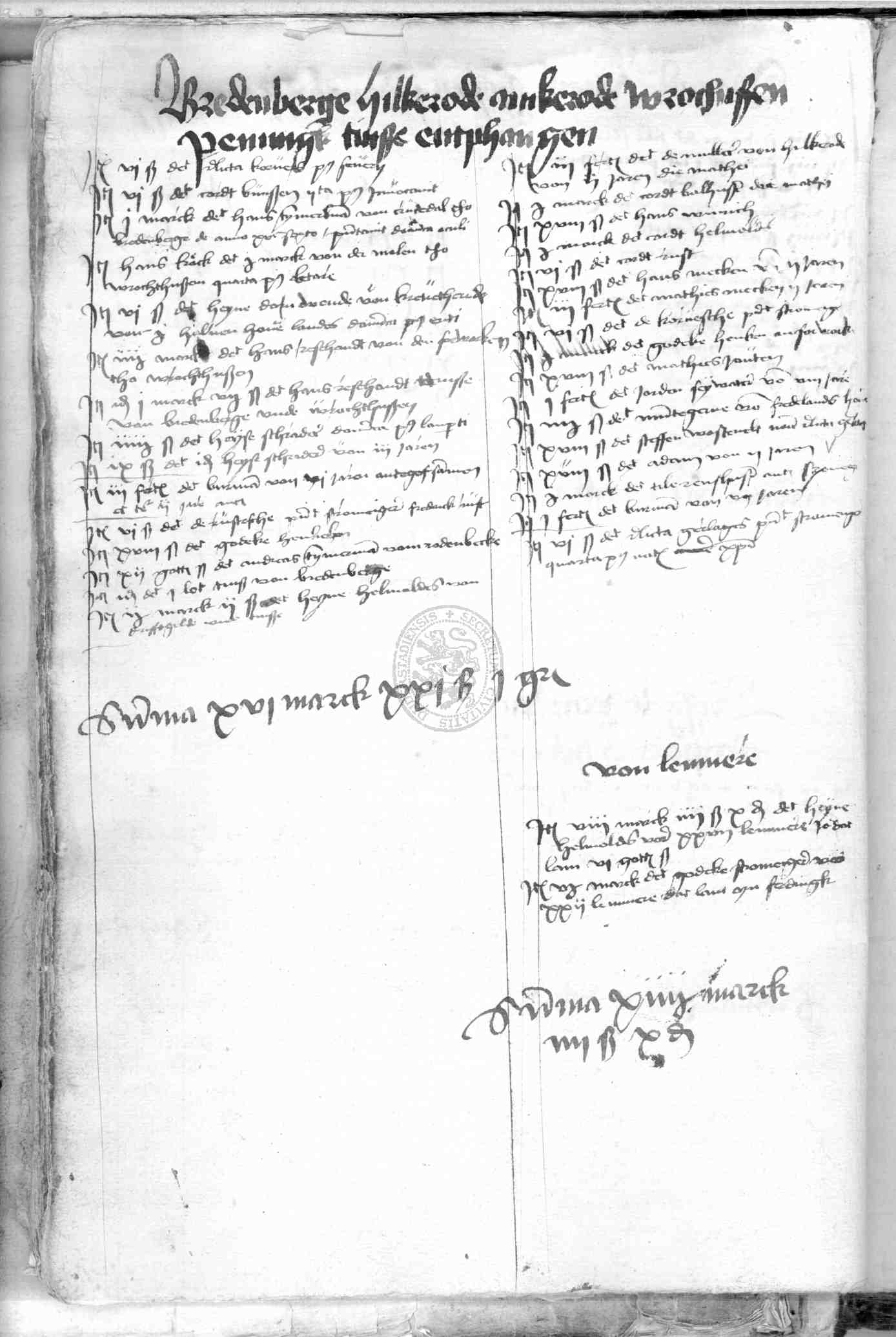 | Rubrum: | vogedye Hilkerode Amkerode Bredenberge Wrochthusen penningk tinse entphangen |