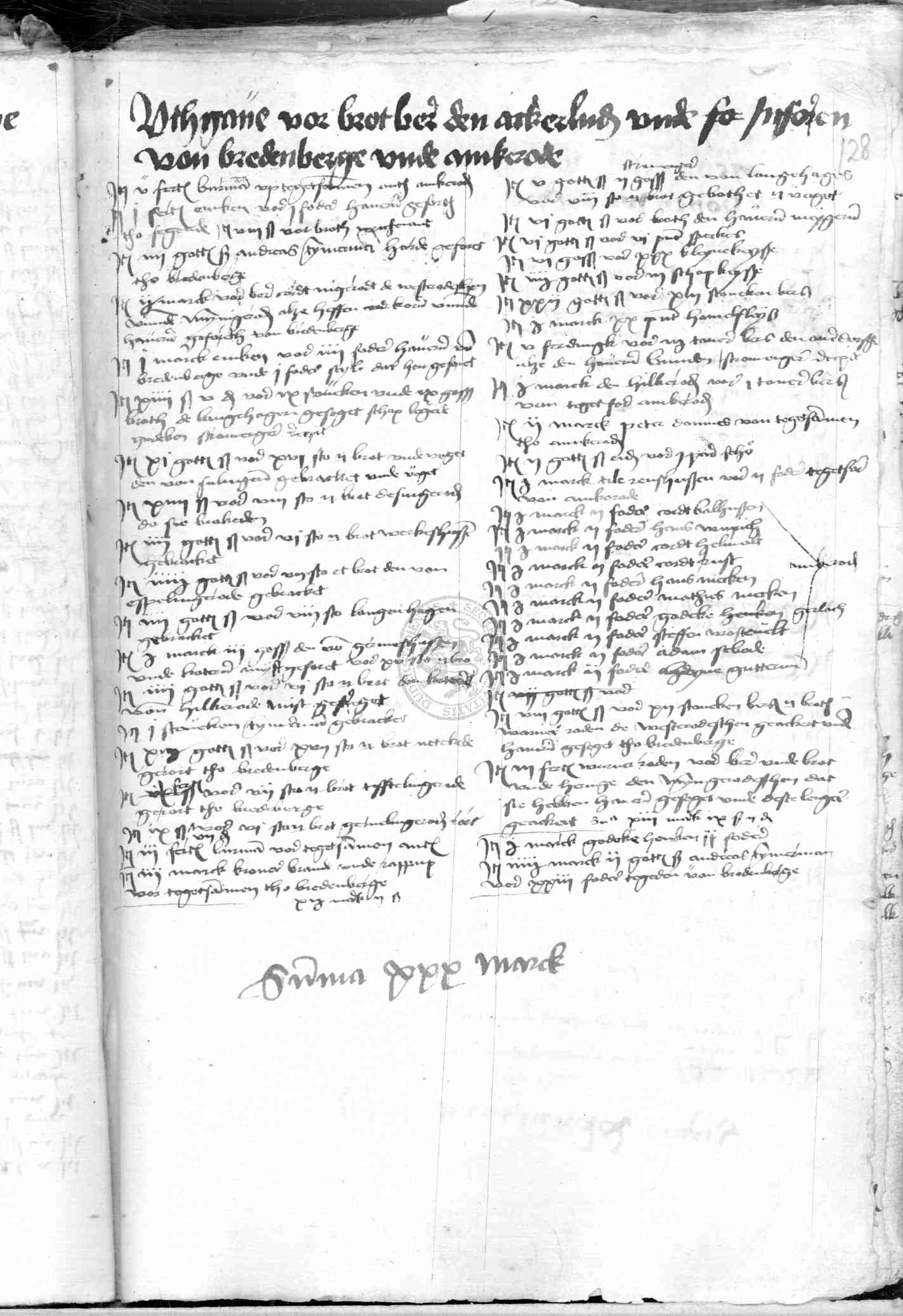 | Rubrum: | uthgave vor brot ber den ackerluden unde inforen von Bredenberge unde Amkerode |