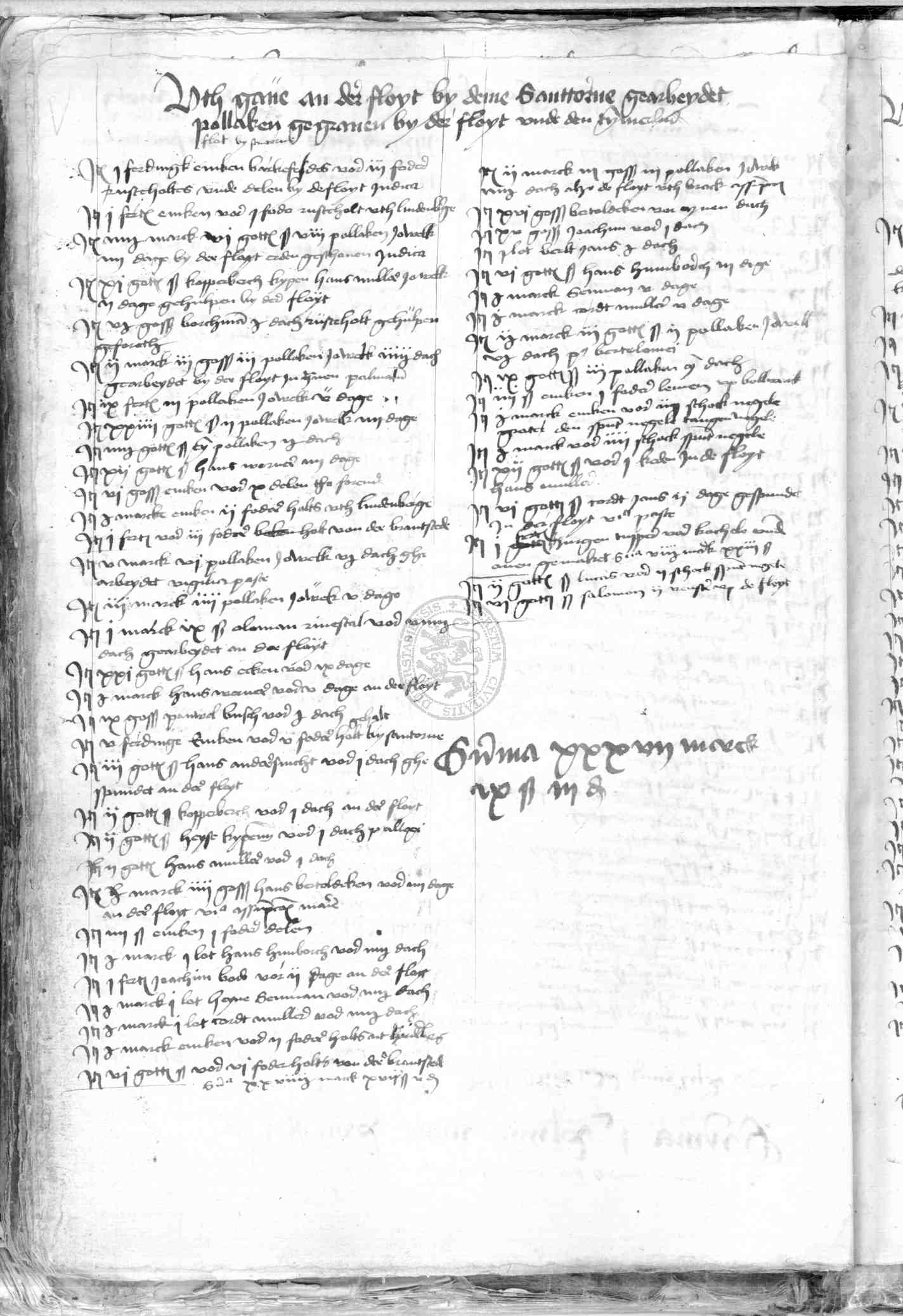 | Rubrum: | utgave an der floyt by deme santtorne gearbeydet pollaken gegraven by der floyt unde den tymmerluden |