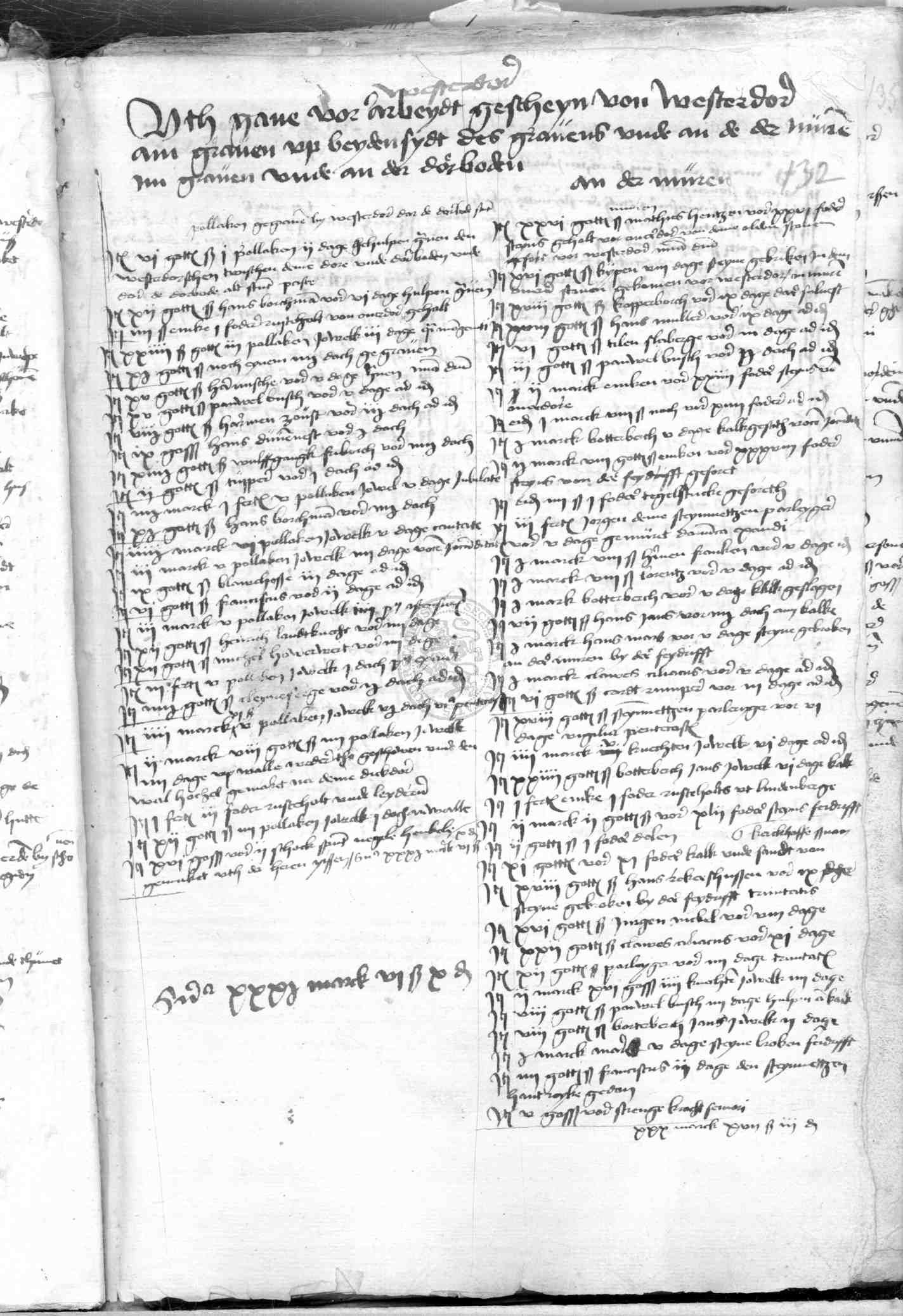 | Rubrum: | utgave vor arbeydt gescheyn von westerdor am graven up byden sydt des gravens unde an de muren im graven unde an der dorboden |
