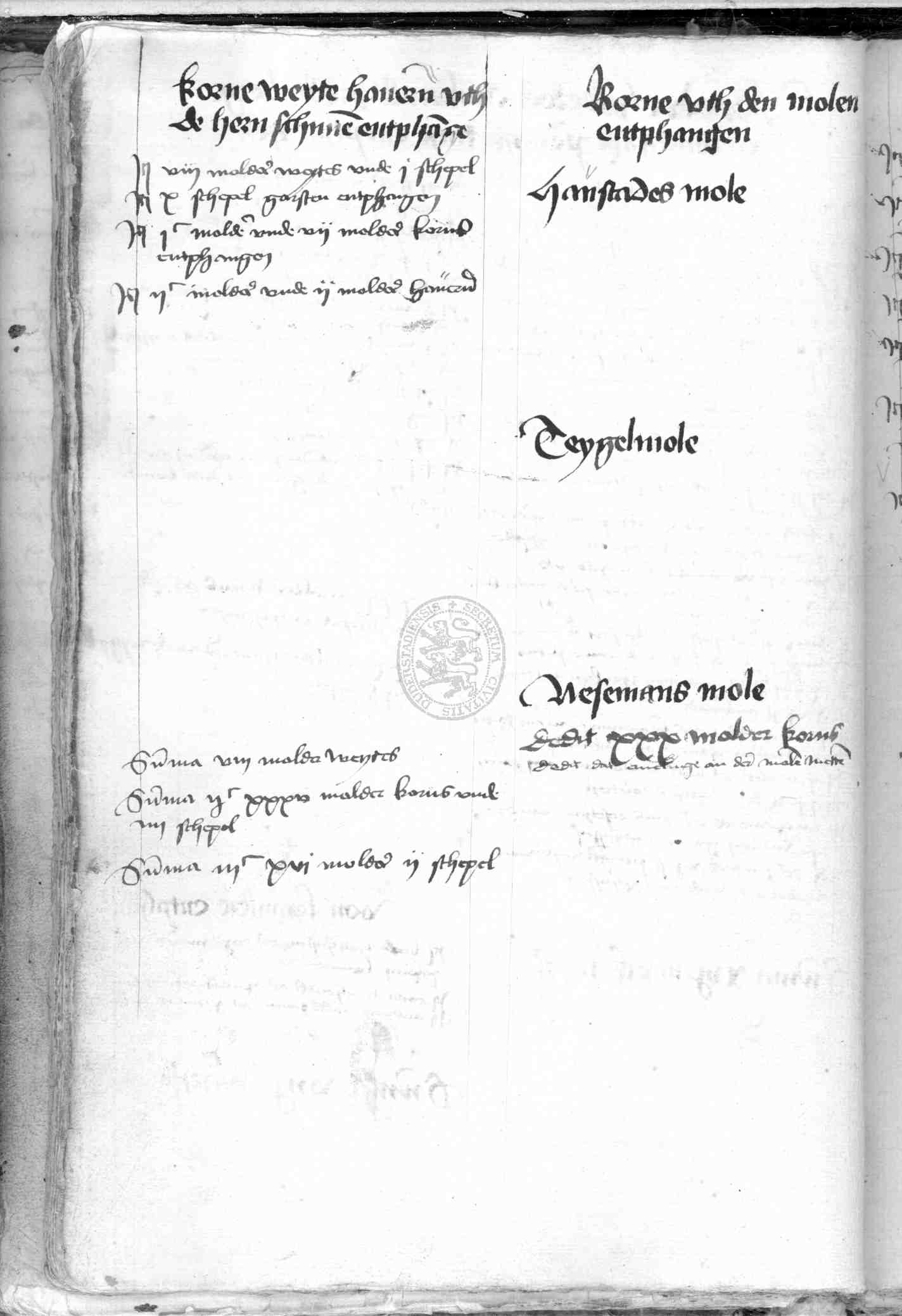 | Rubrum: | korne entphangen uth den molen |