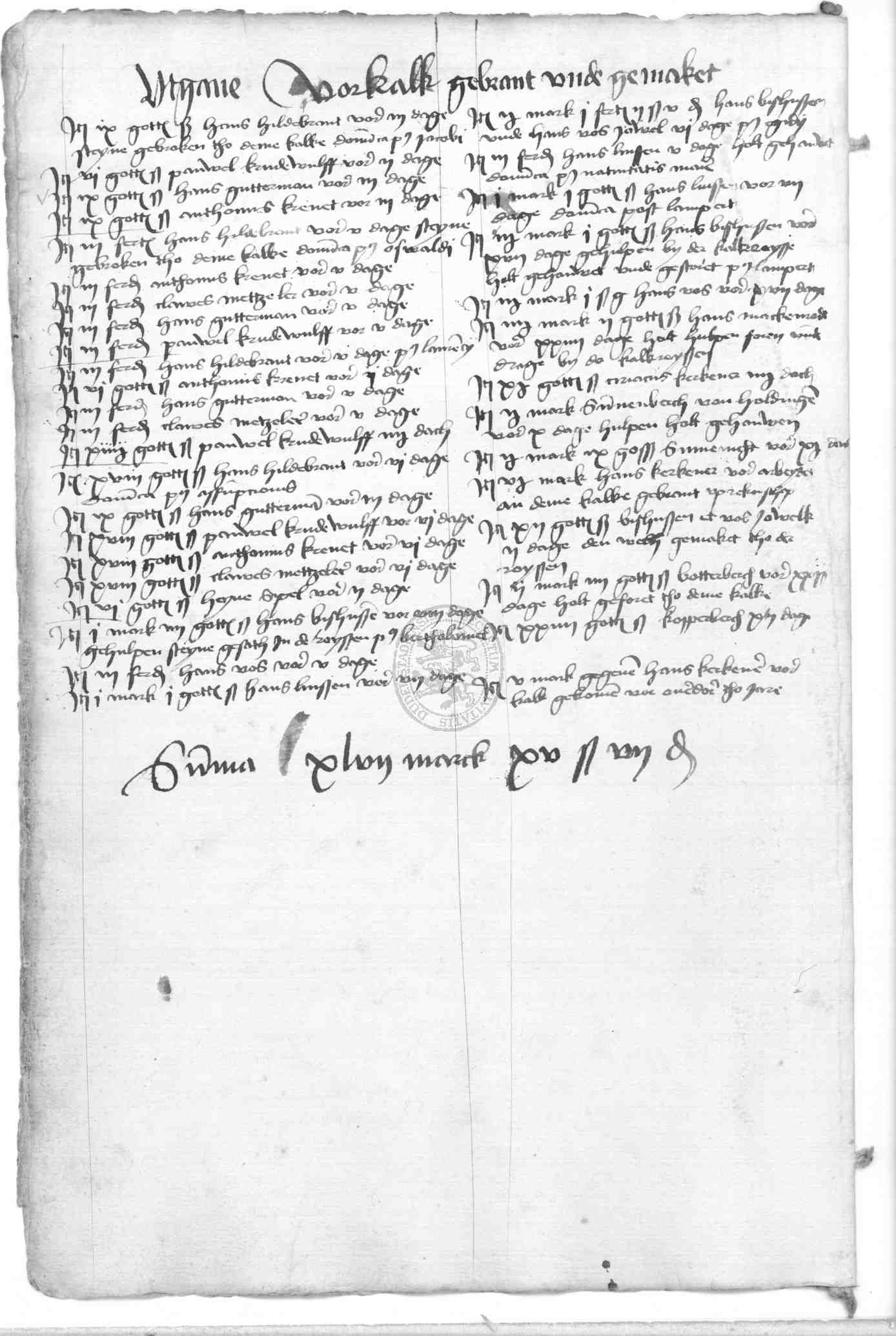 | Rubrum: | utgave vor kalk gebrant unde gemaket |