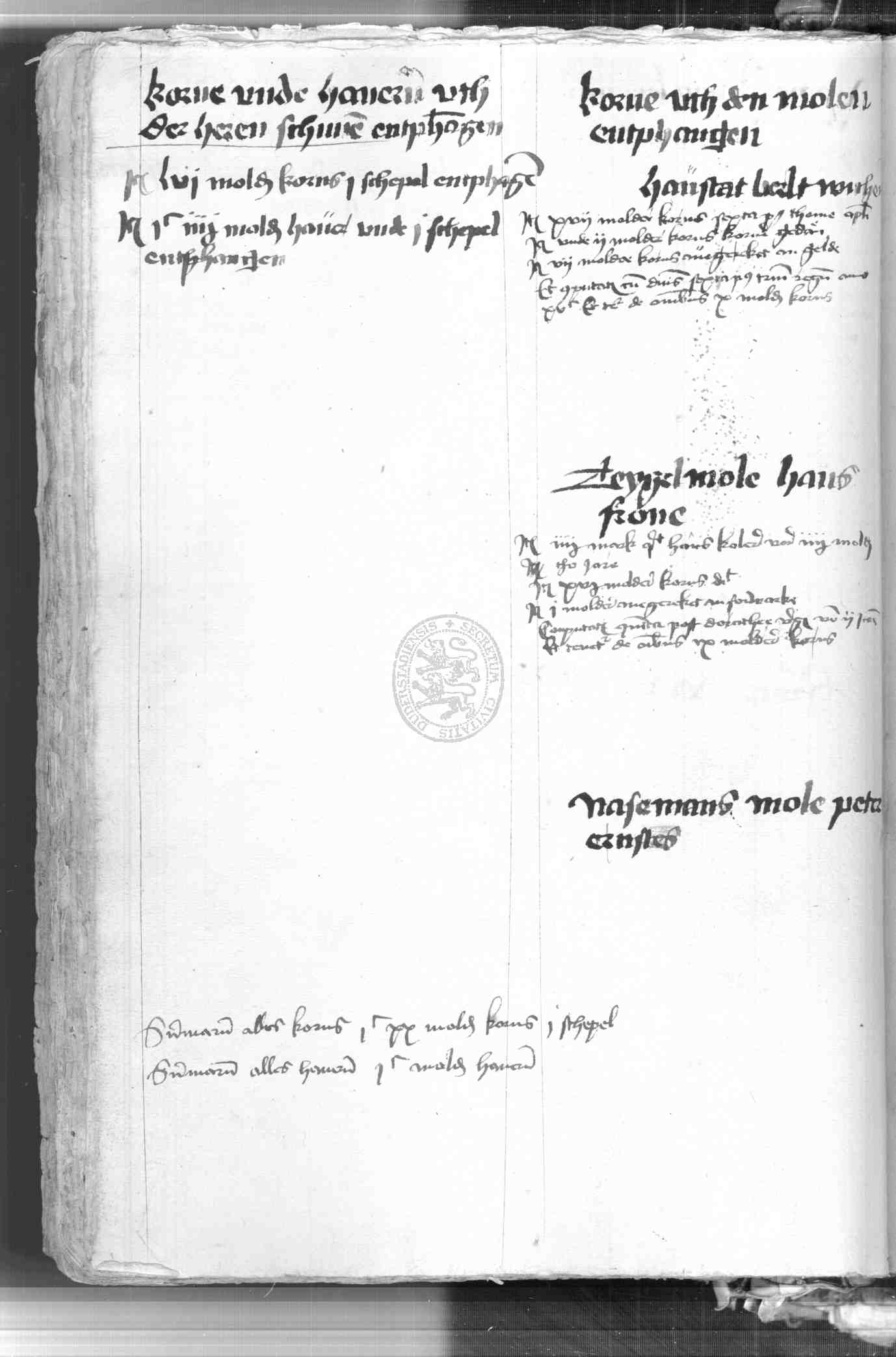 | Rubrum: | korne uth den molen entphangen |