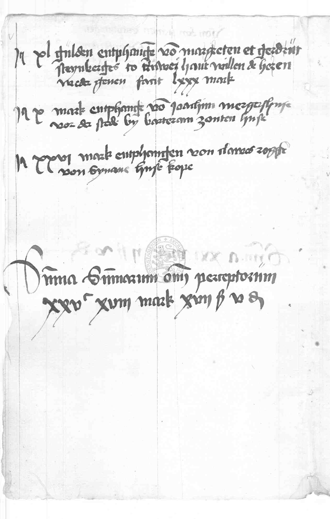 | Rubrum: | entphangen von Clawes Rogge von Symons husen kope |