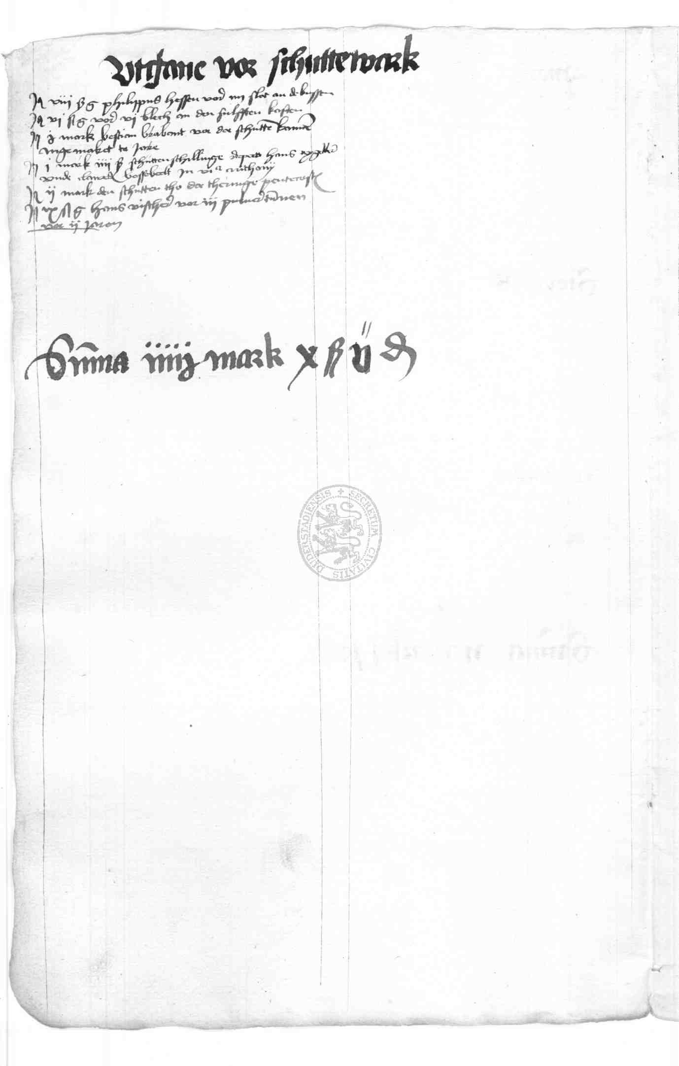 | Rubrum: | uthgave vor schuttewark |