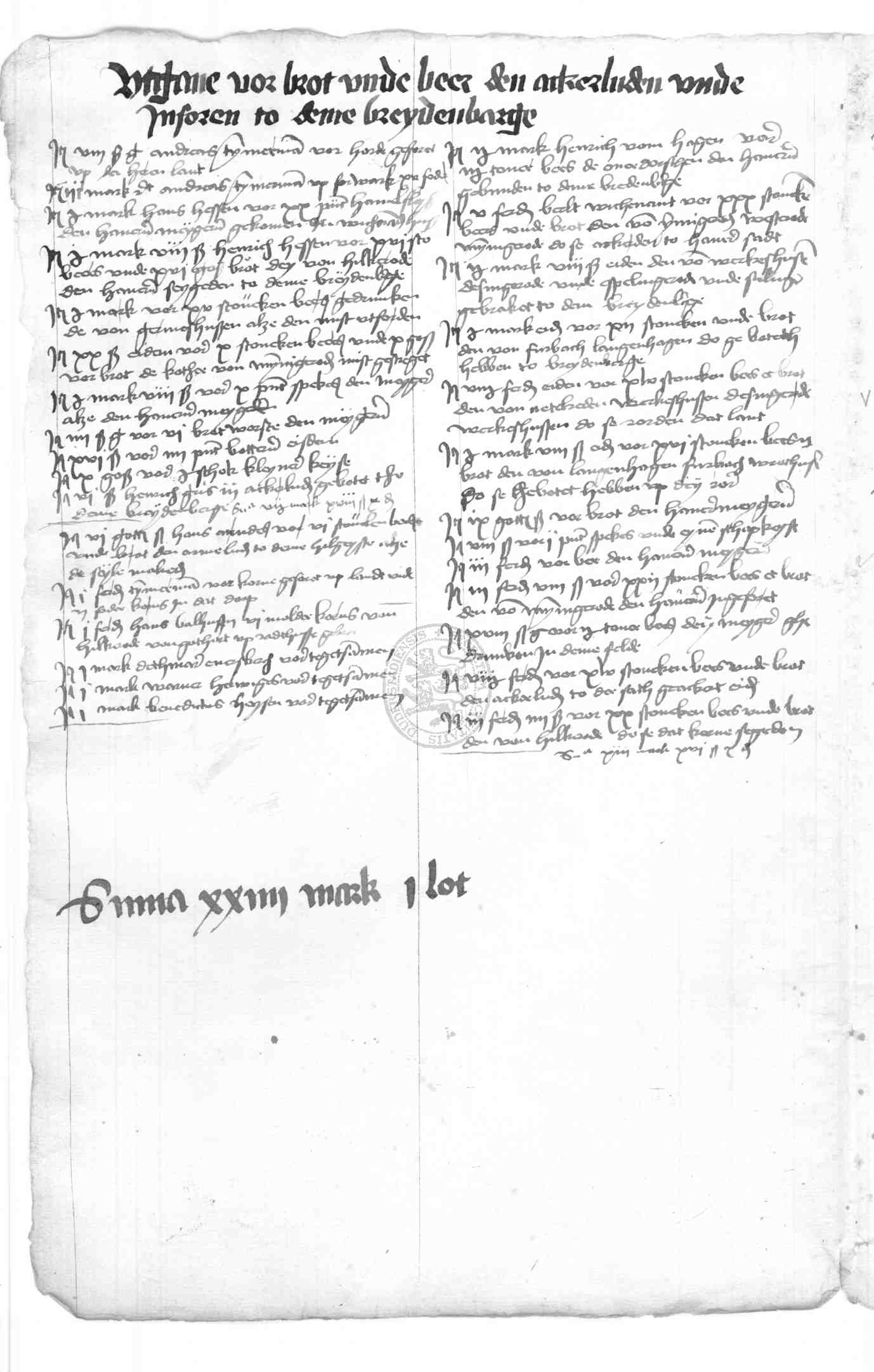 | Rubrum: | utgave vor beer unde brot den ackerluden unde inforen to deme Breydenbarge |