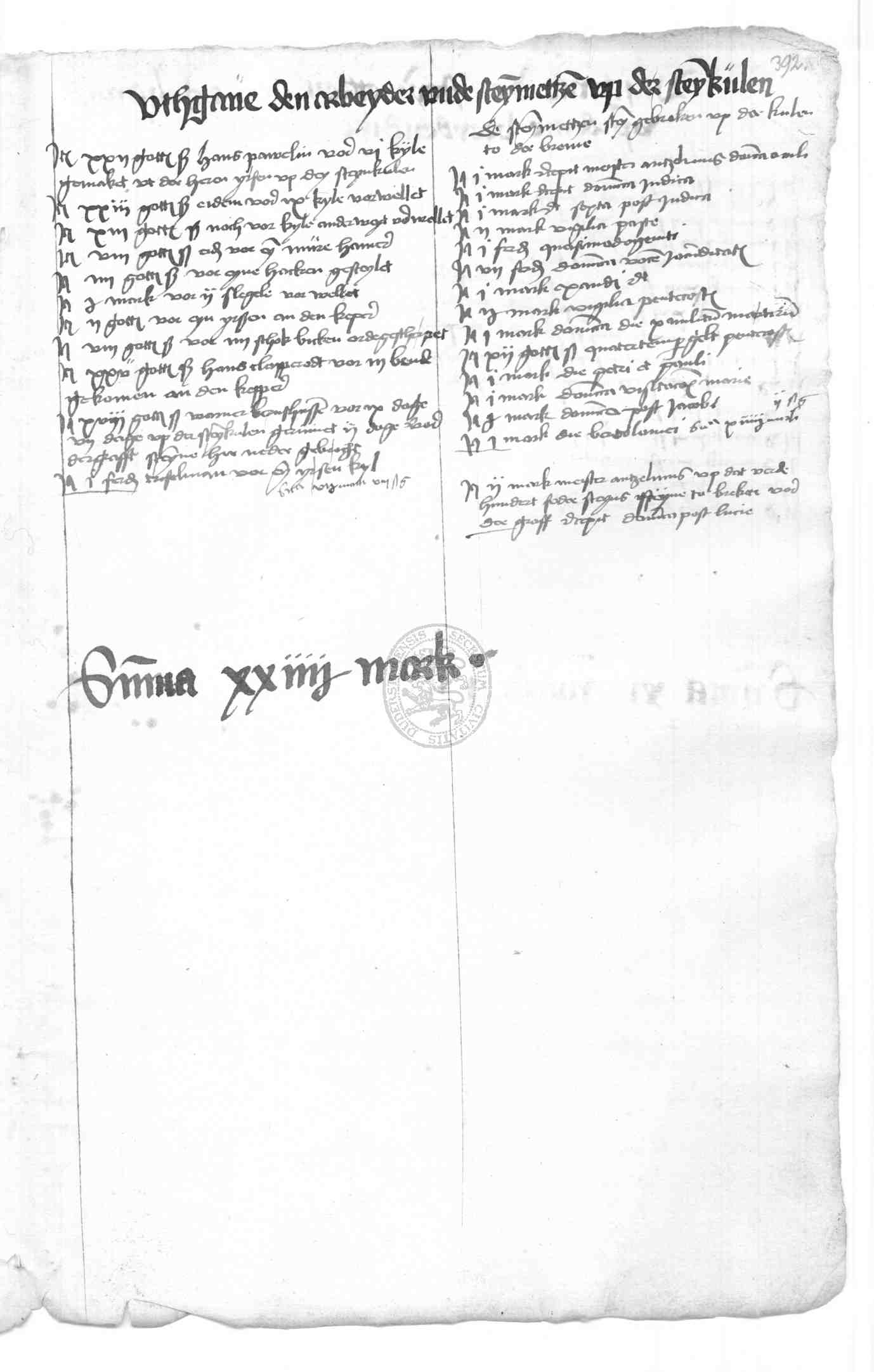 | Rubrum: | utgave den arbeyder unde steynmettzen up der steynkulen |