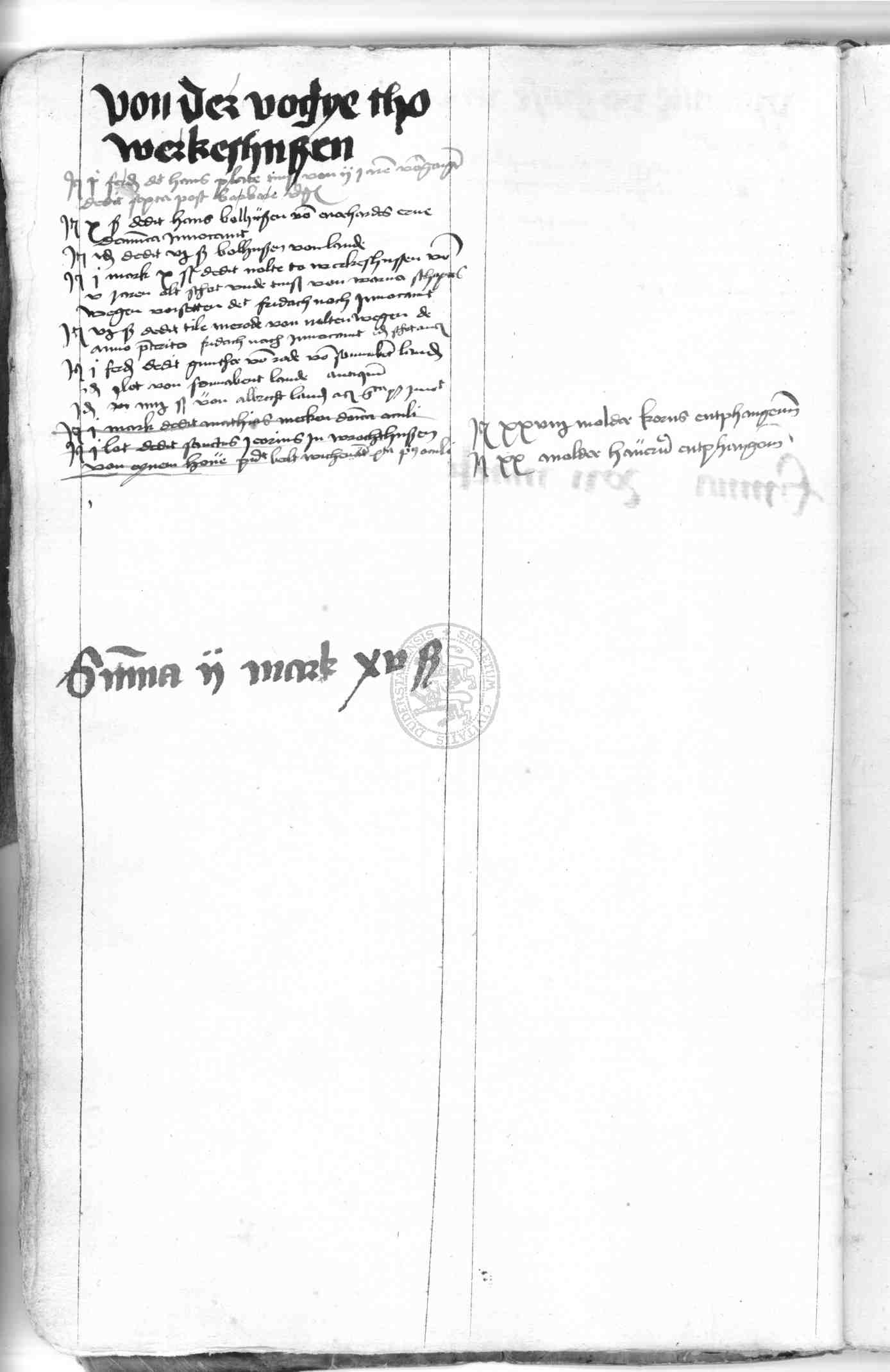 | Rubrum: | von der vogtye tho Werkeshusen |