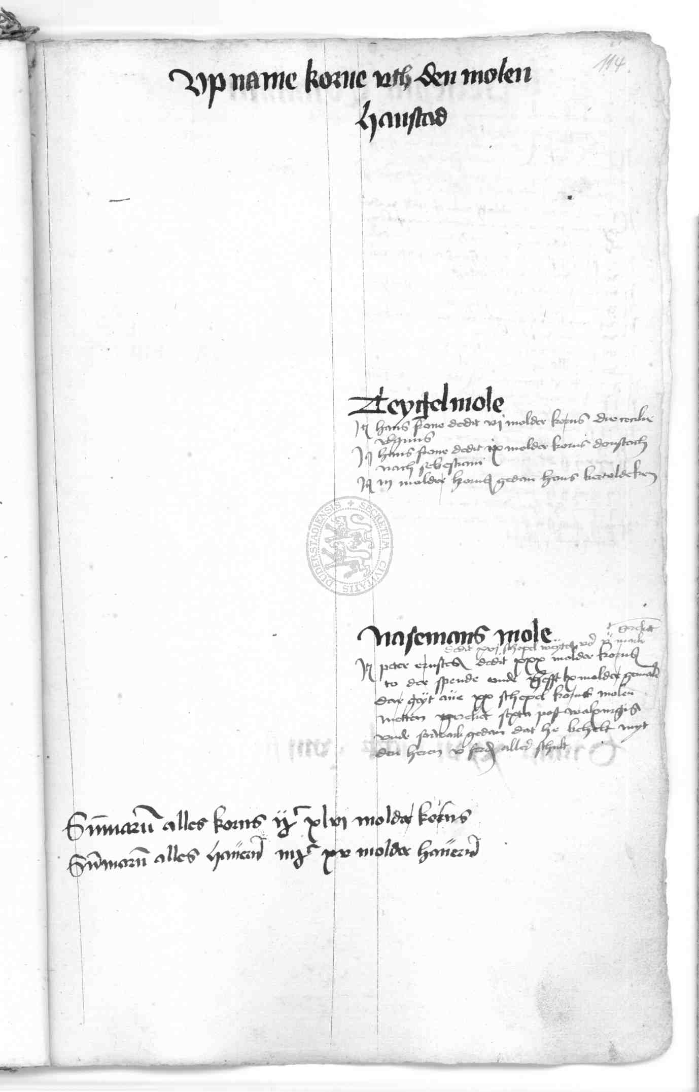 | Rubrum: | upname korne uth den molen |