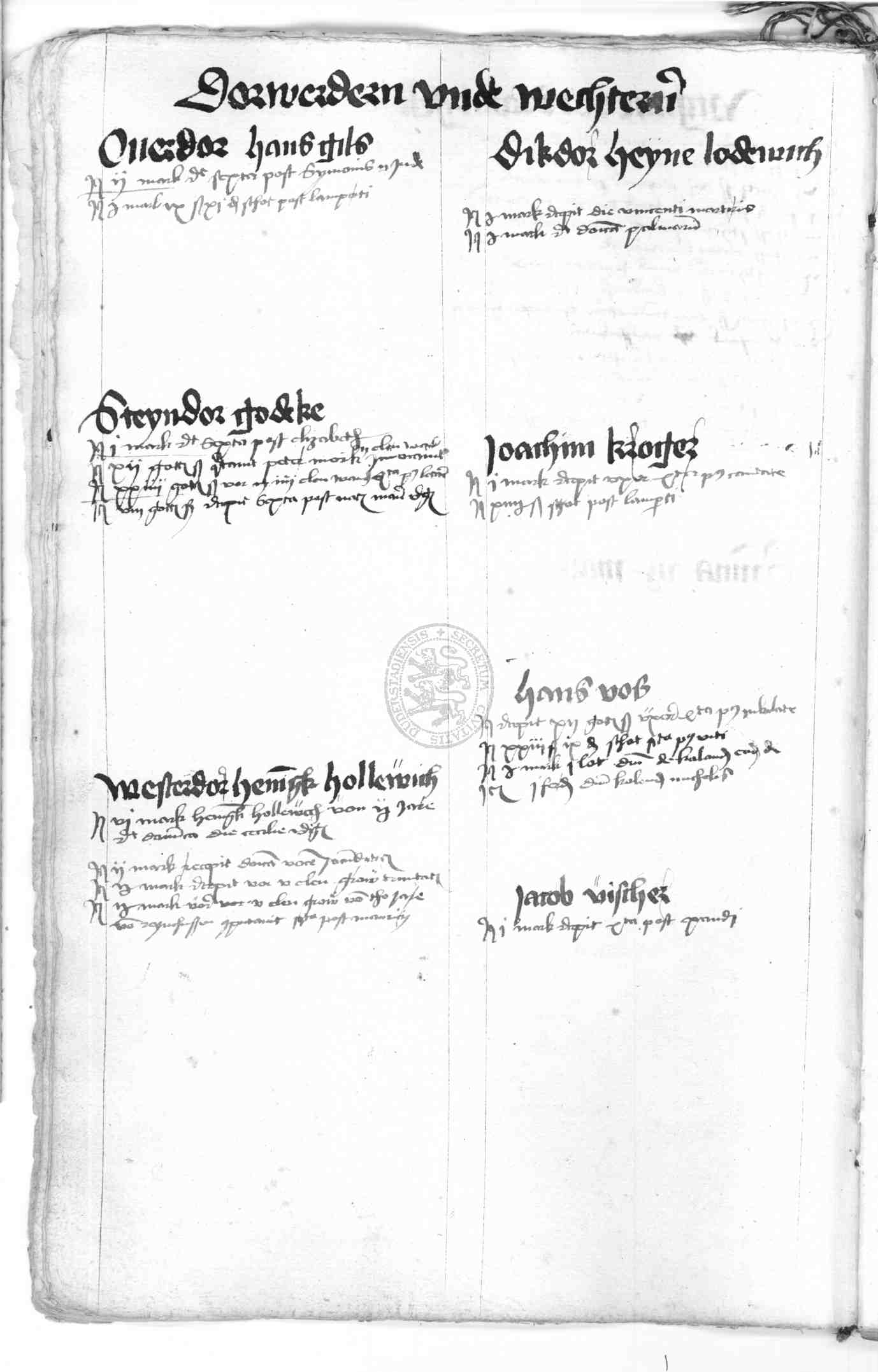 | Rubrum: | dorwerdern und wechteren |