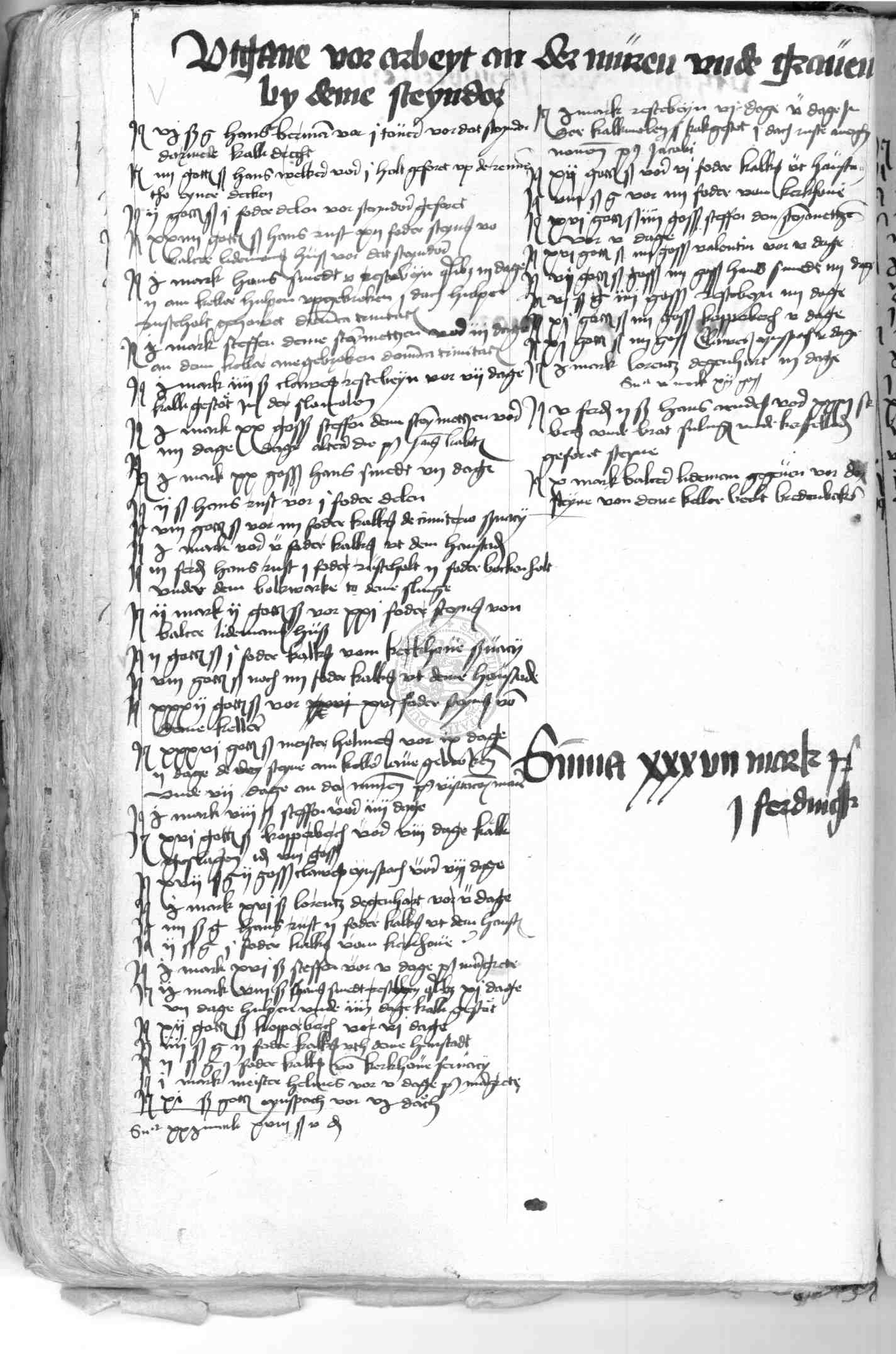 | Rubrum: | utgave vor arbeyt an de muren unde graven by deme Steyndore |