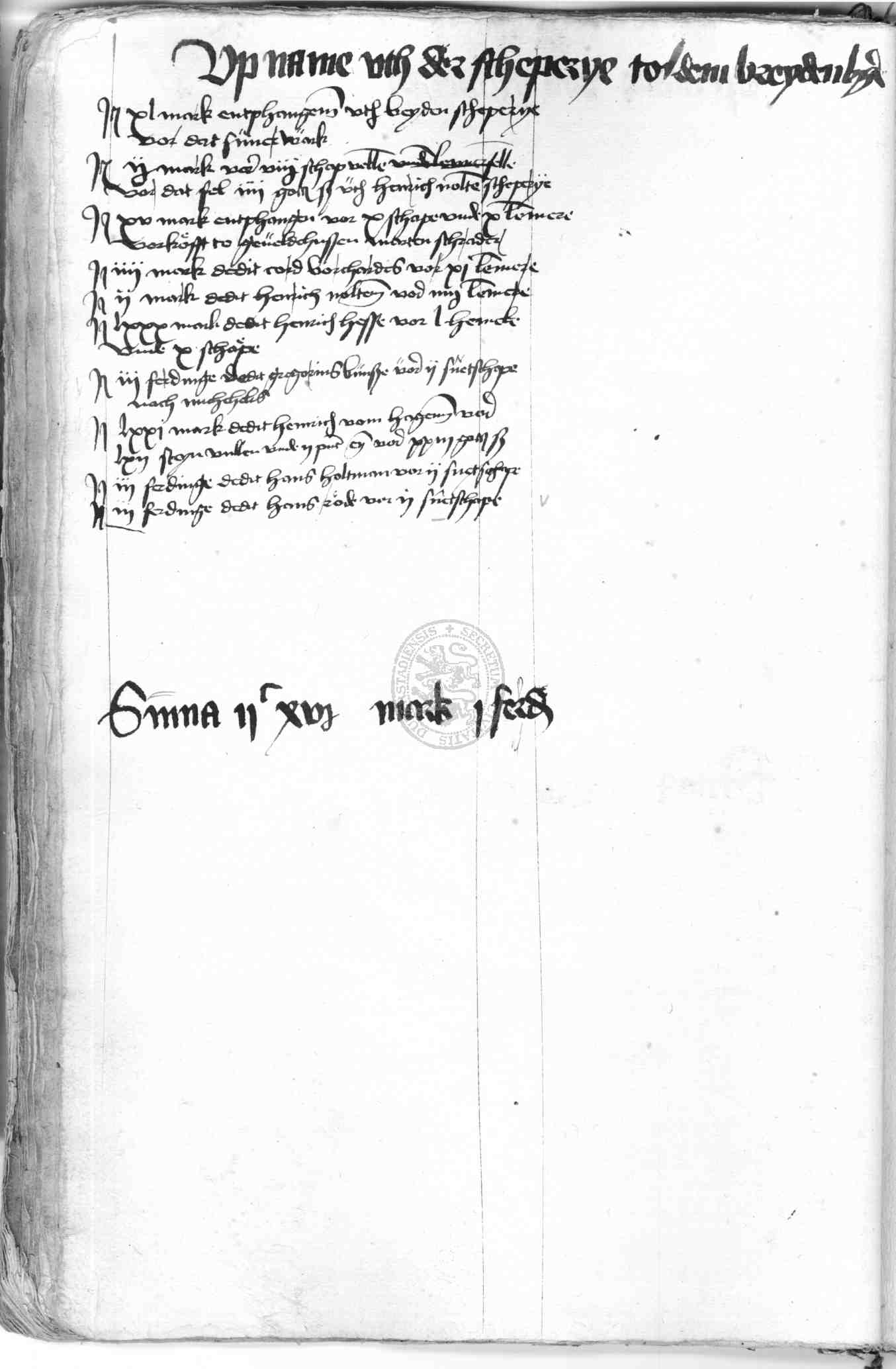 | Rubrum: | upname uth der scheperye to dem Breydenberge |