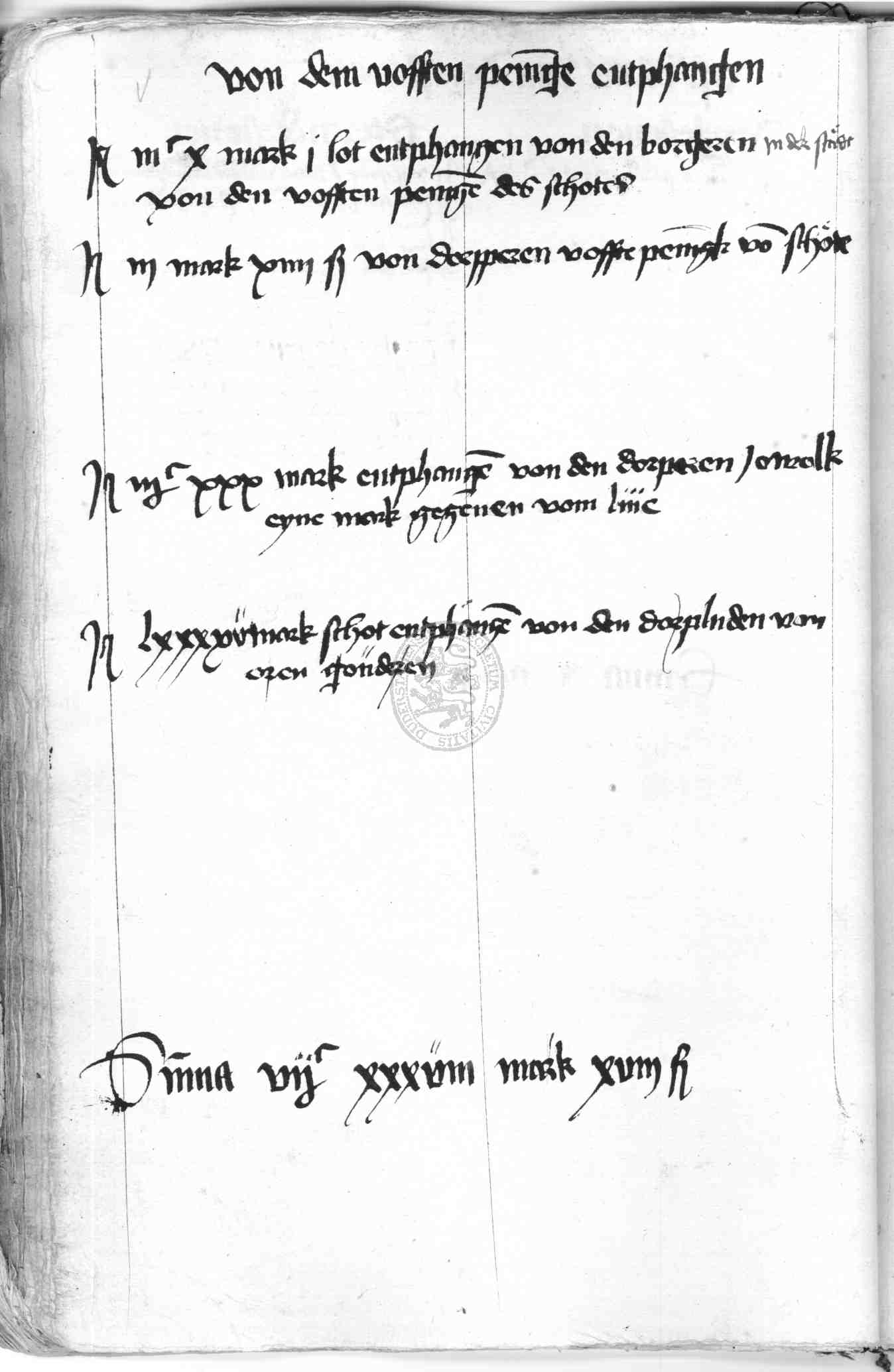 | Rubrum: | von dem vofften pennige entphangen |