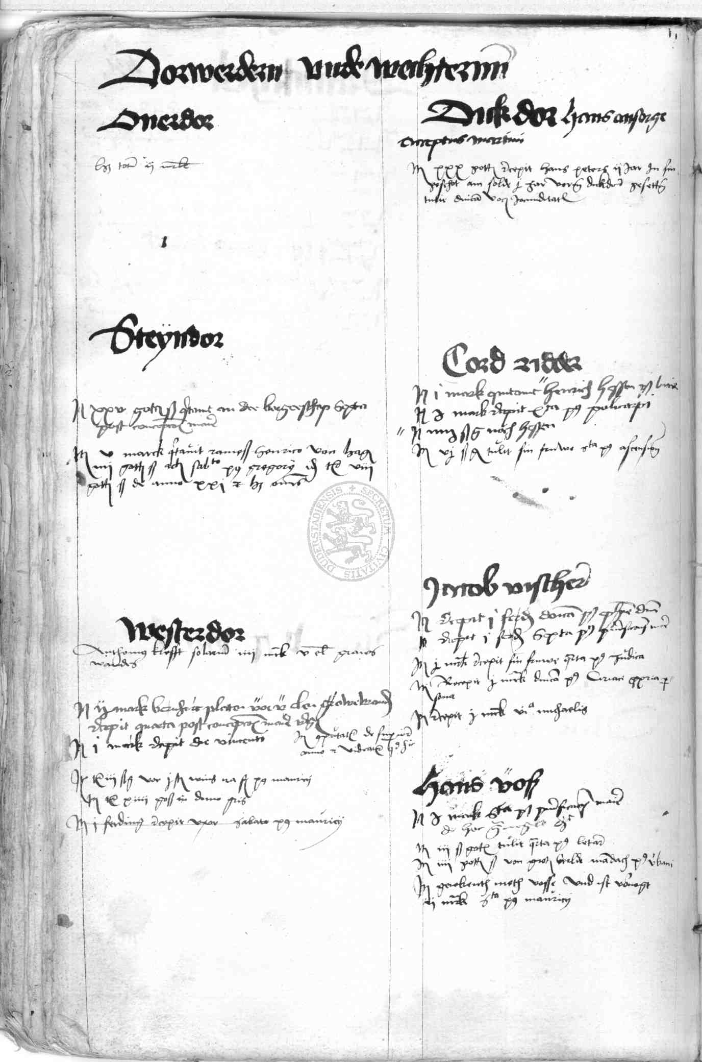 | Rubrum: | dorwerdern und wechteren |