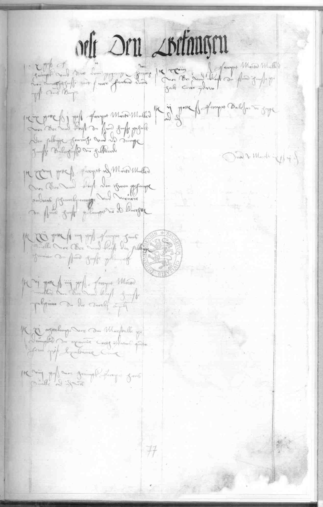 | Rubrum: | vor kost den gefangen |