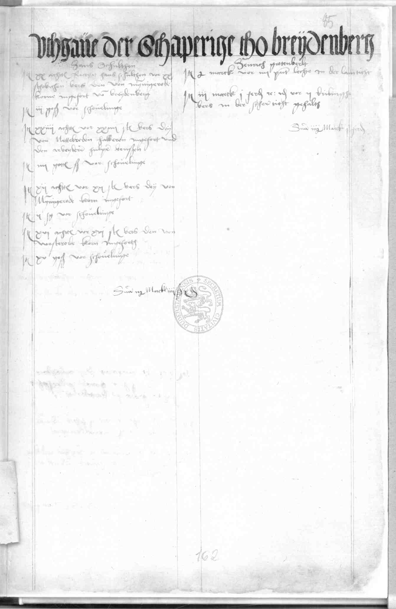 | Rubrum: | uthgave tho der schaperige tho Breydenberg |