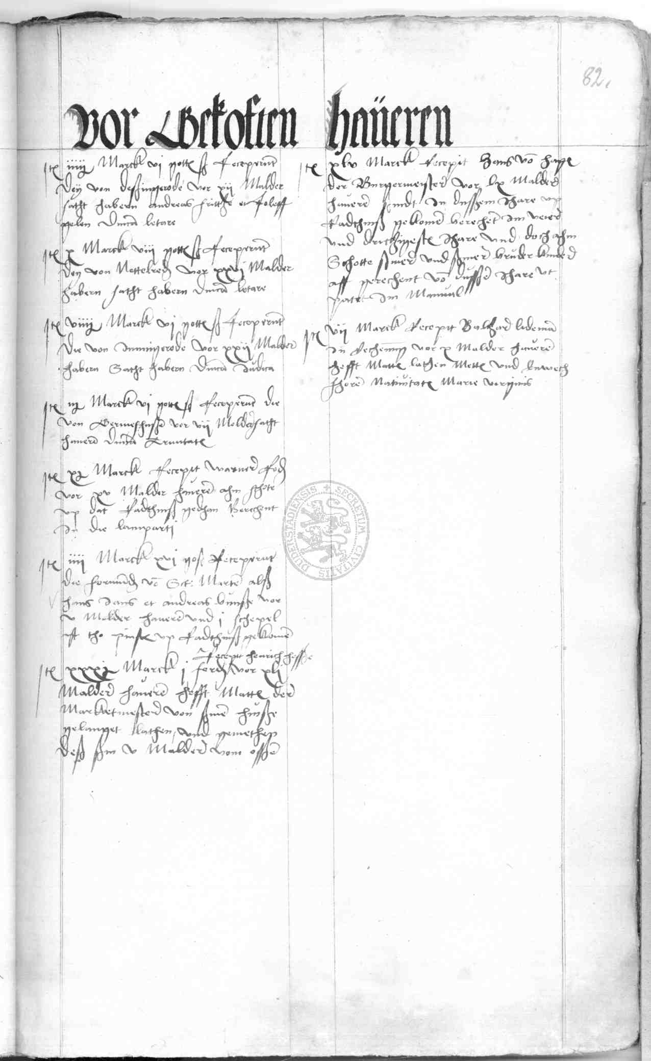 | Rubrum: | vor gekoften haveren |