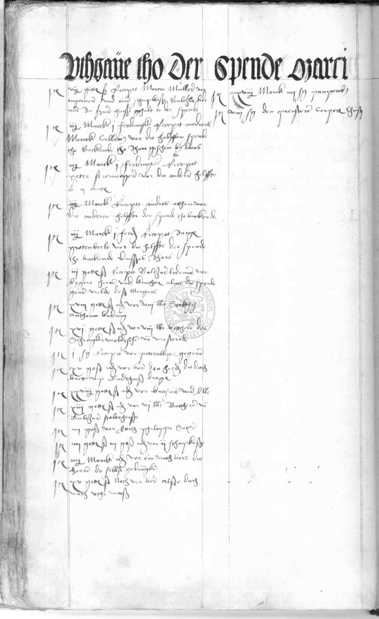| Rubrum: | uthgave tho der spende Marci |