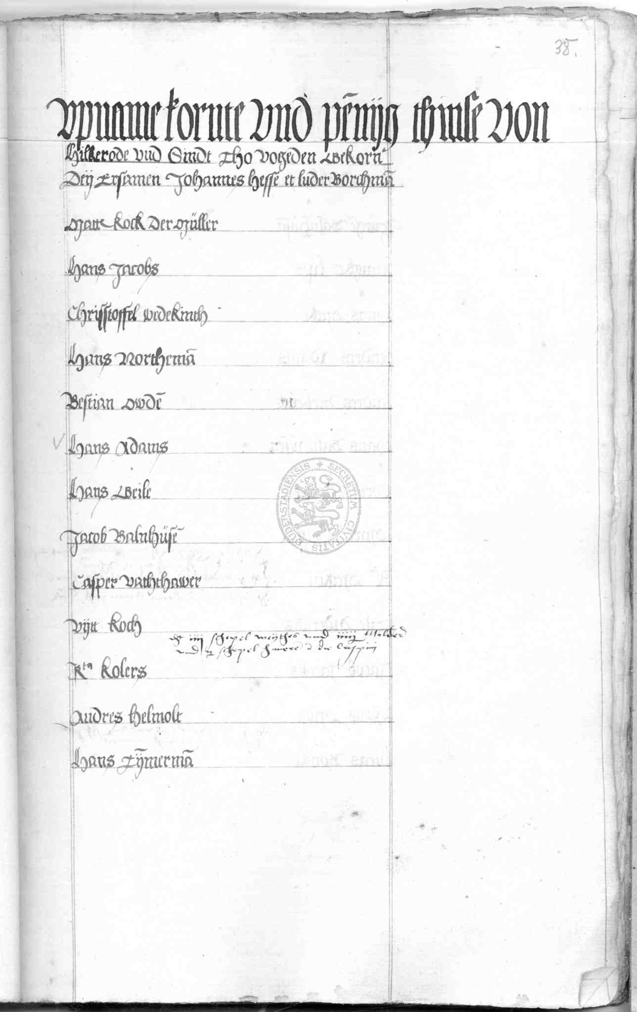 | Rubrum: | upname kornte und pennyg thinse von Hilkerode |