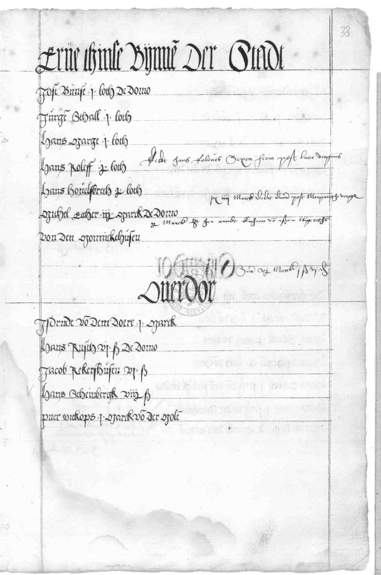 | Rubrum: | erve thinse bynnen der stadt |