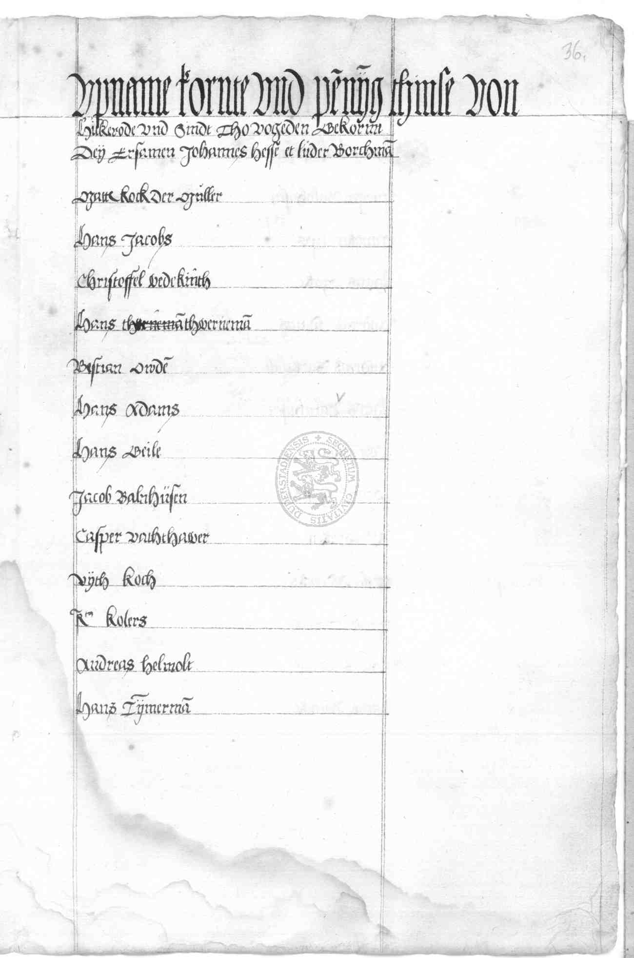 | Rubrum: | upname kornte und pennyg thinse von Hilkerode |