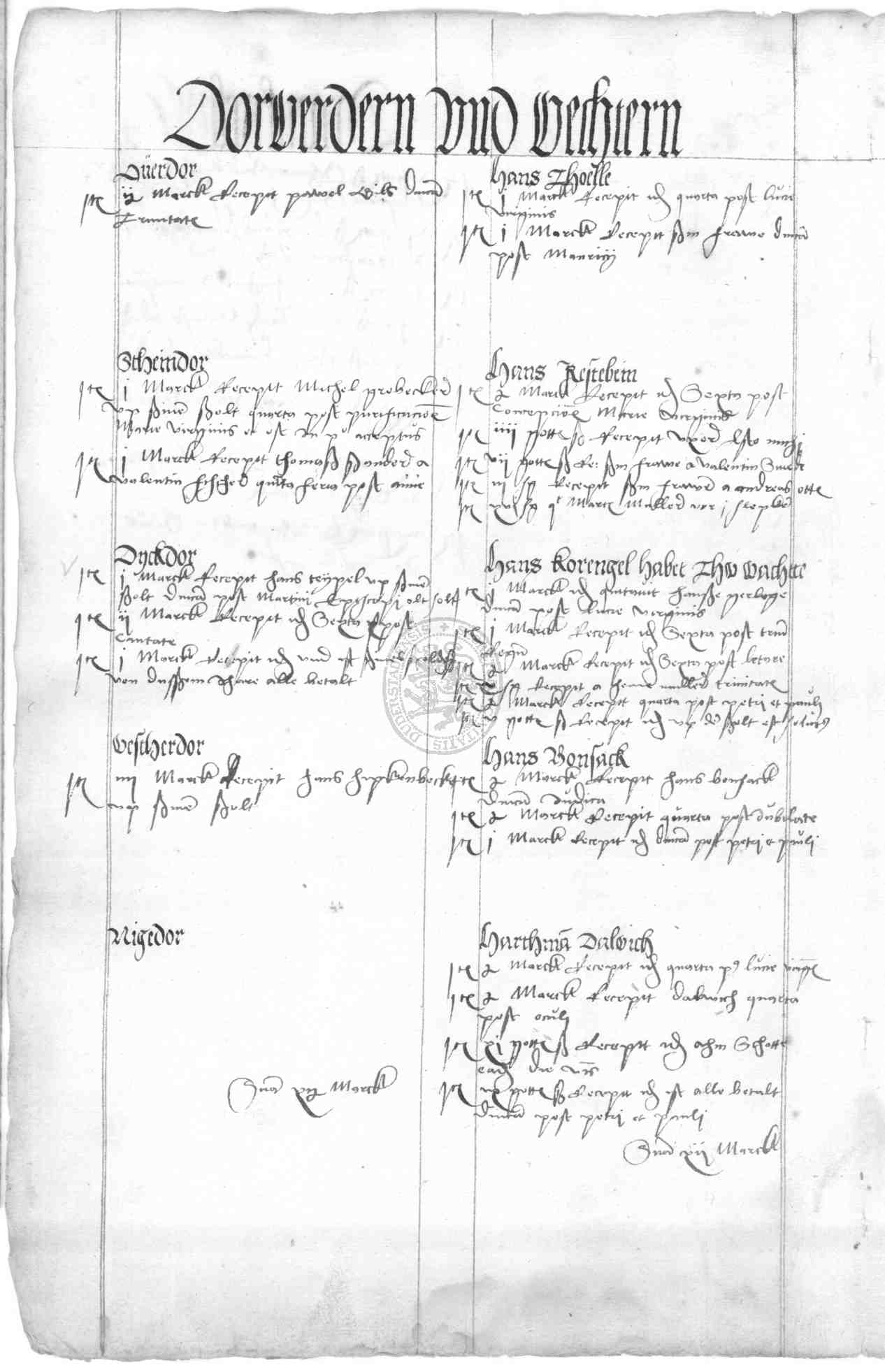 | Rubrum: | dorwerdern und wechtern |