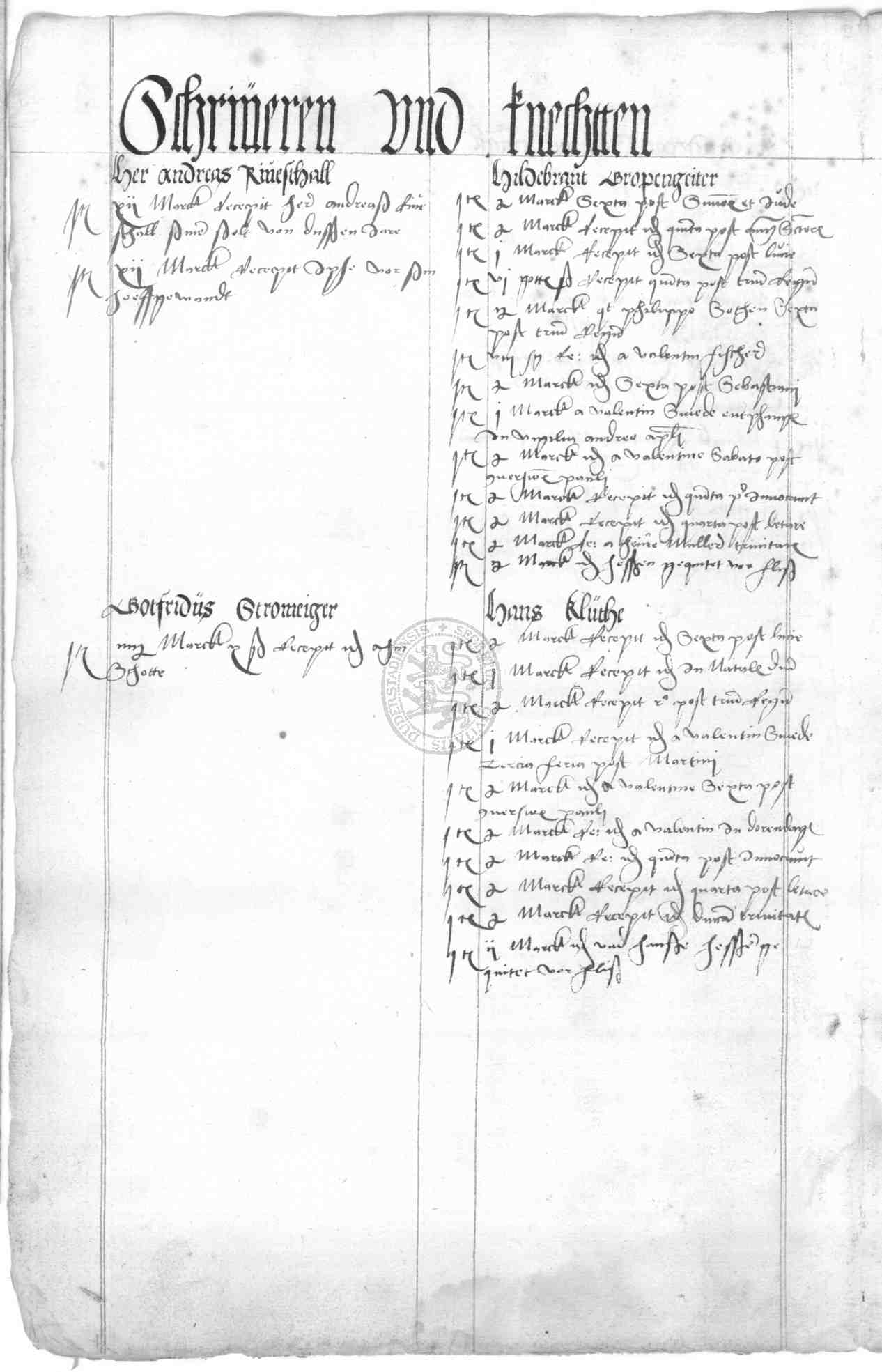 | Rubrum: | schriveren und knechtten |
