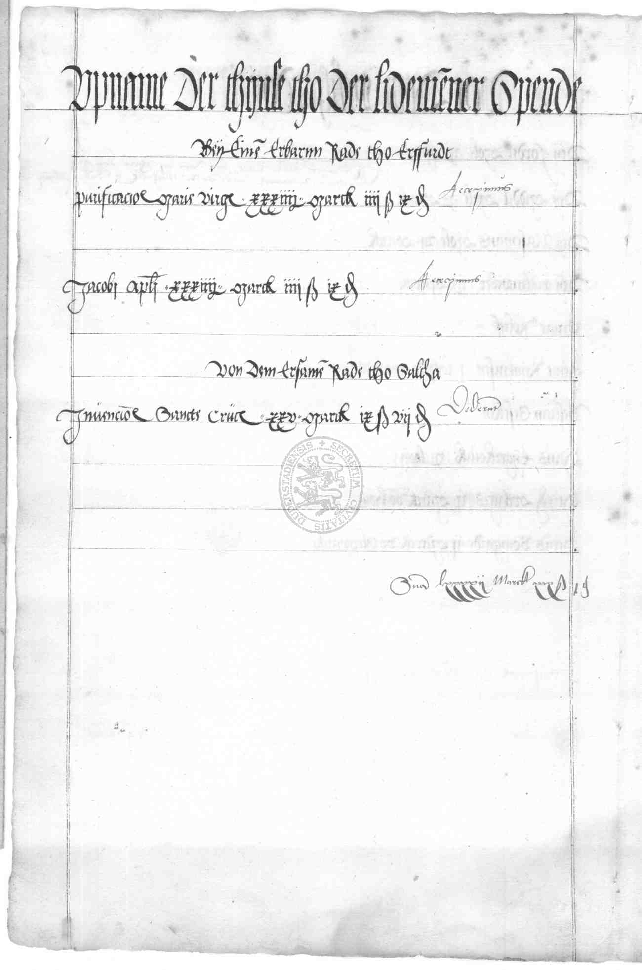 | Rubrum: | upname der thinse tho der Lidemenner spende |