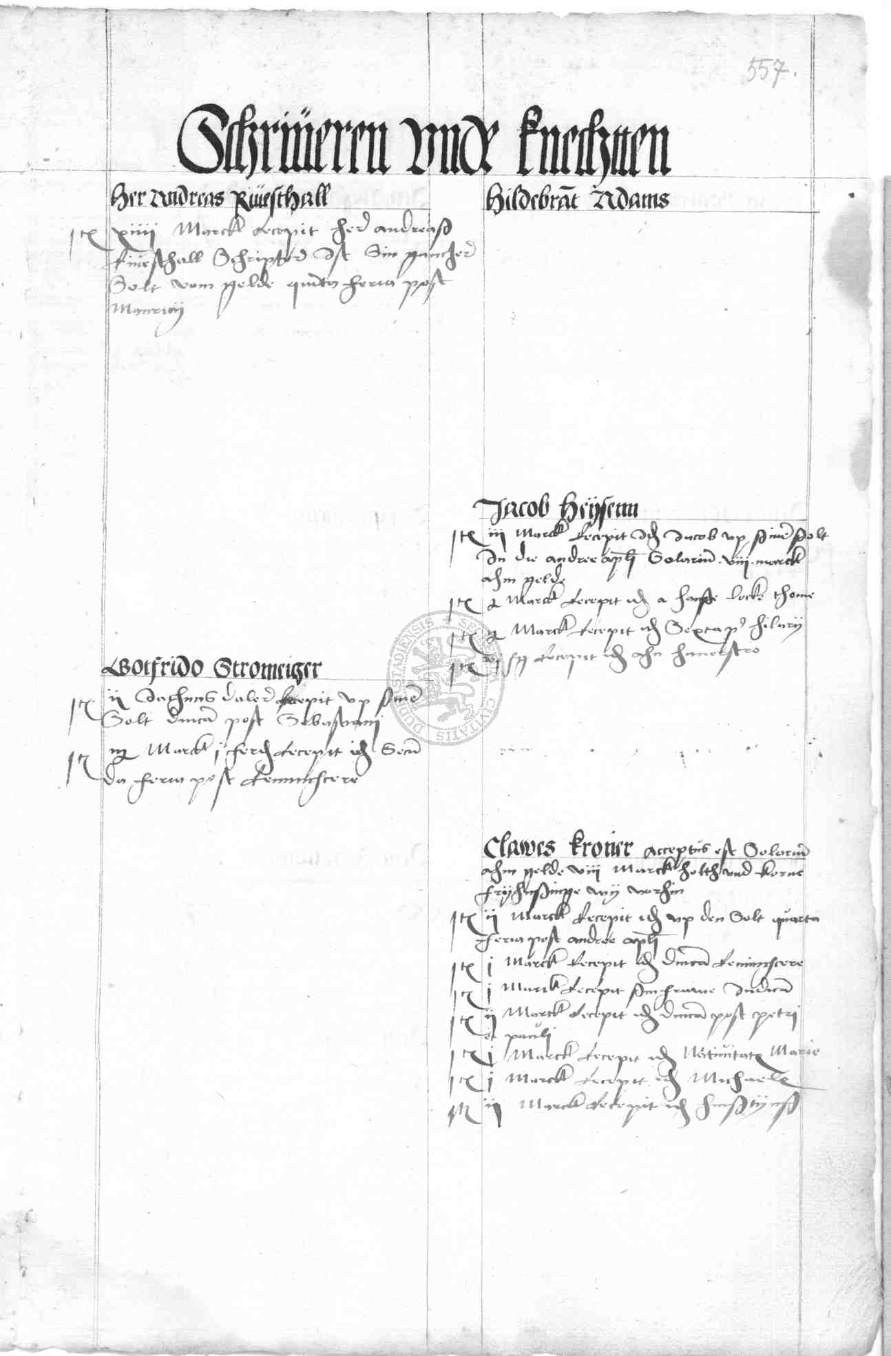 | Rubrum: | schriveren unde knechtten |