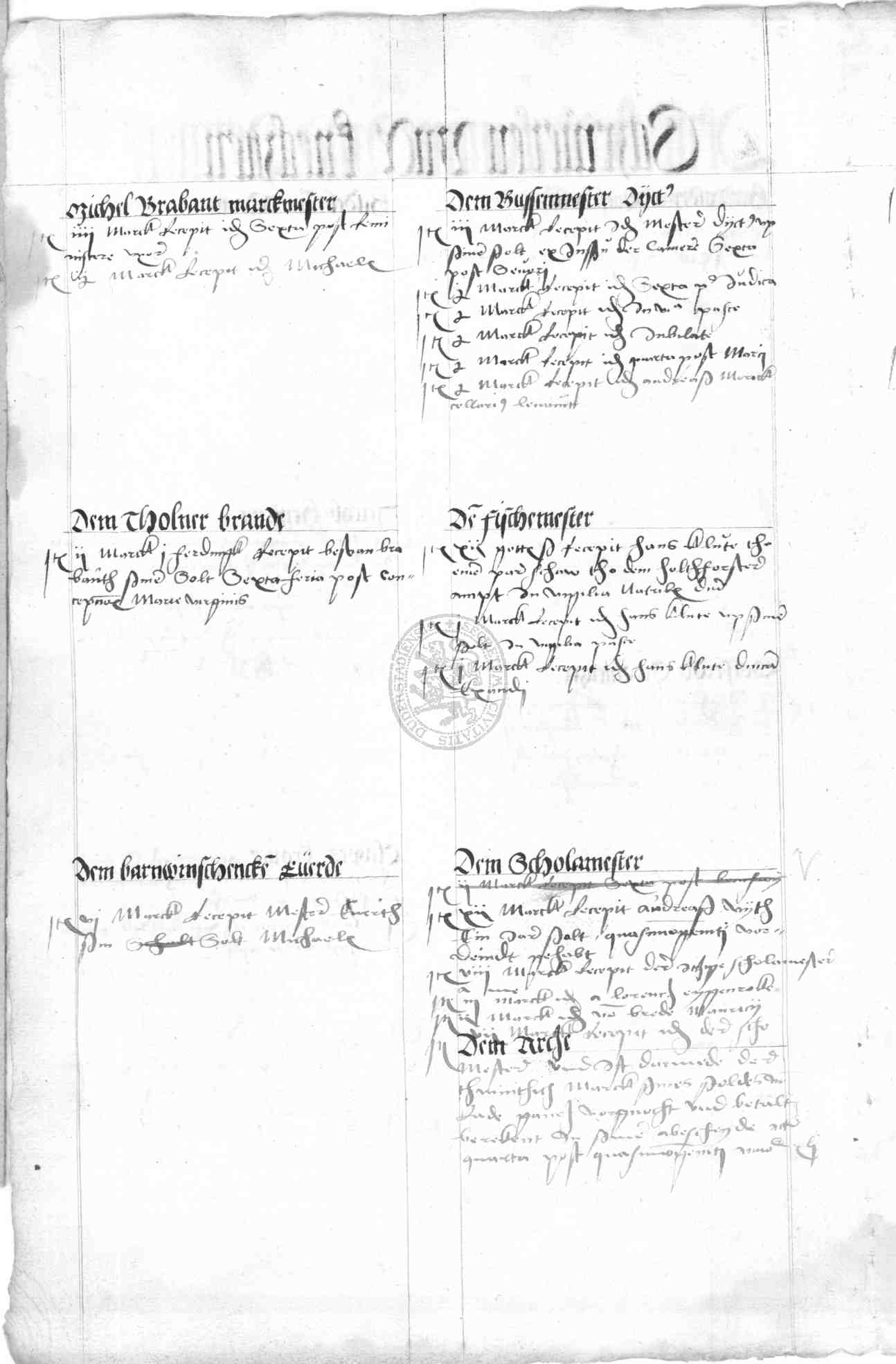 | Subrubrum: | dem bussenmester |