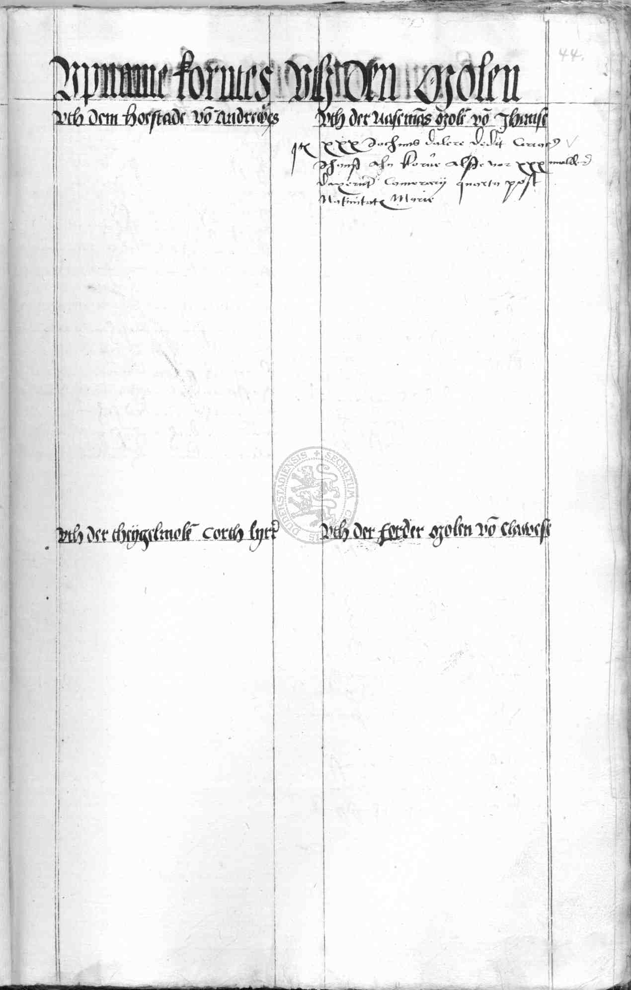 | Subrubrum: | uth der fordermolen |