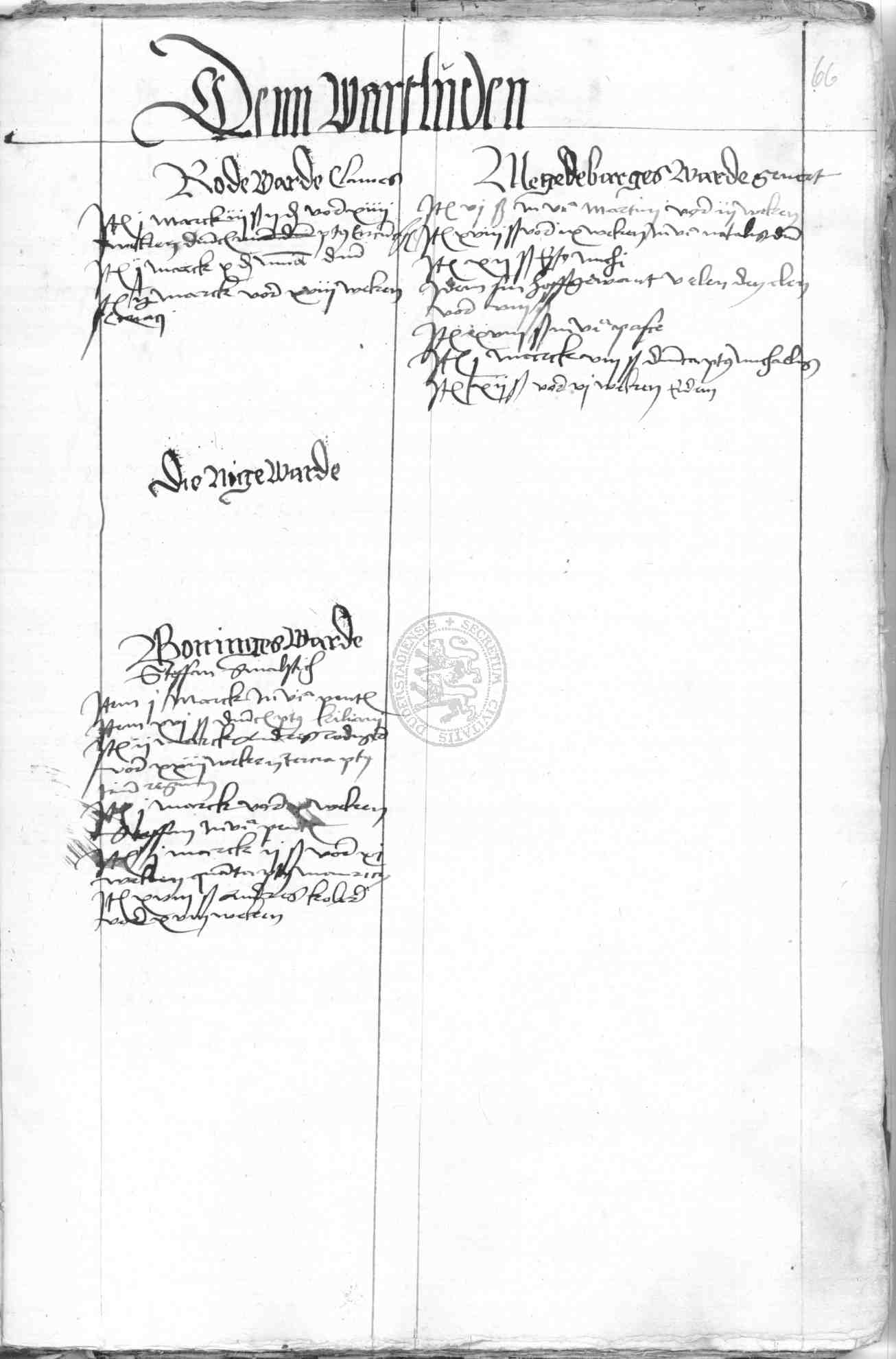 | Subrubrum: | die nige warde |