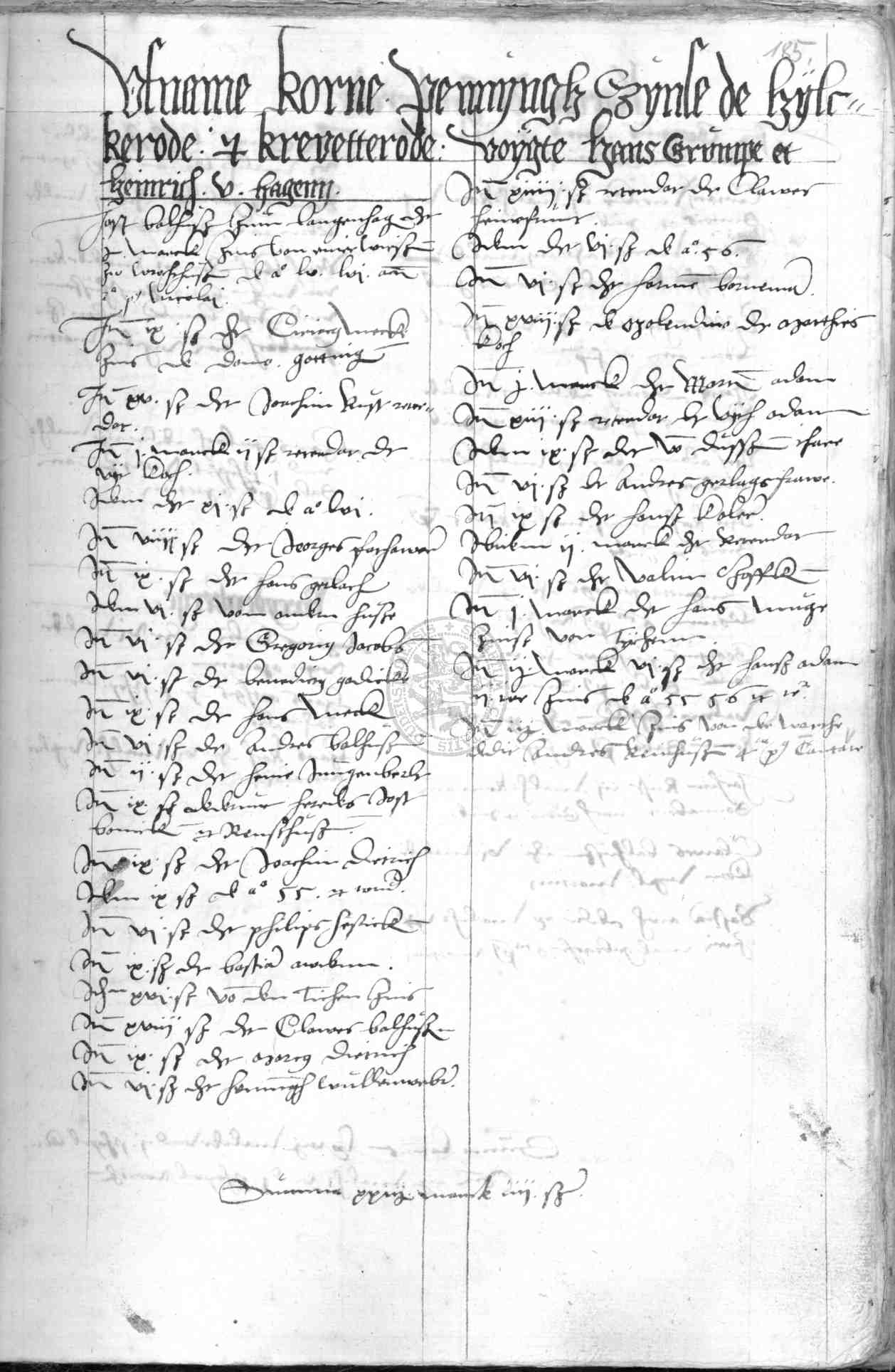 | Rubrum: | ufname korne pfennyngh zynse de Hylckerode et Krevetterode |