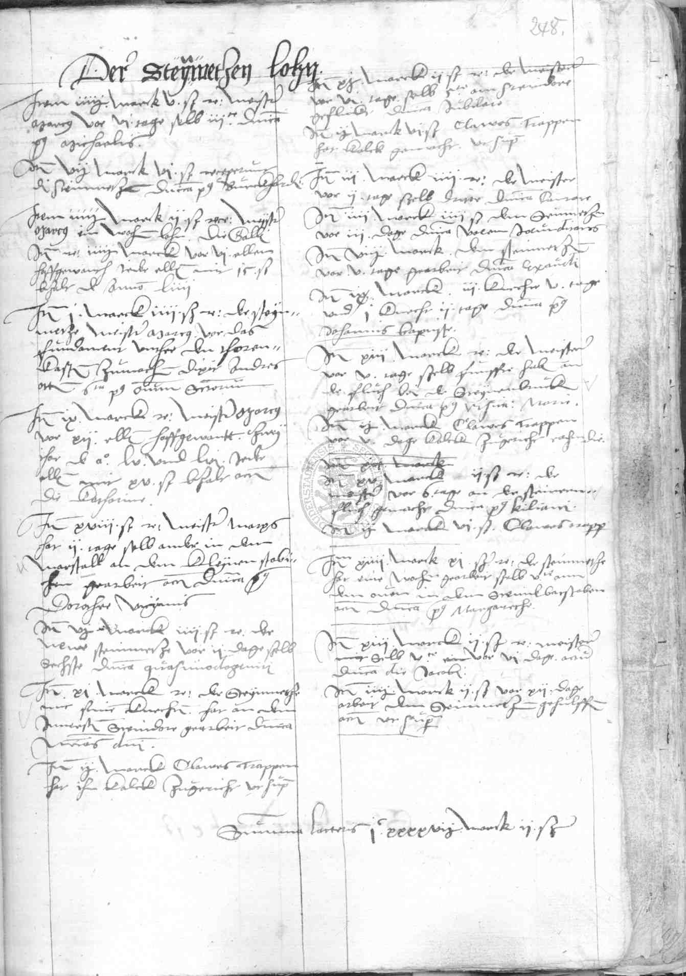 | Rubrum: | der steynmetzen lohn |