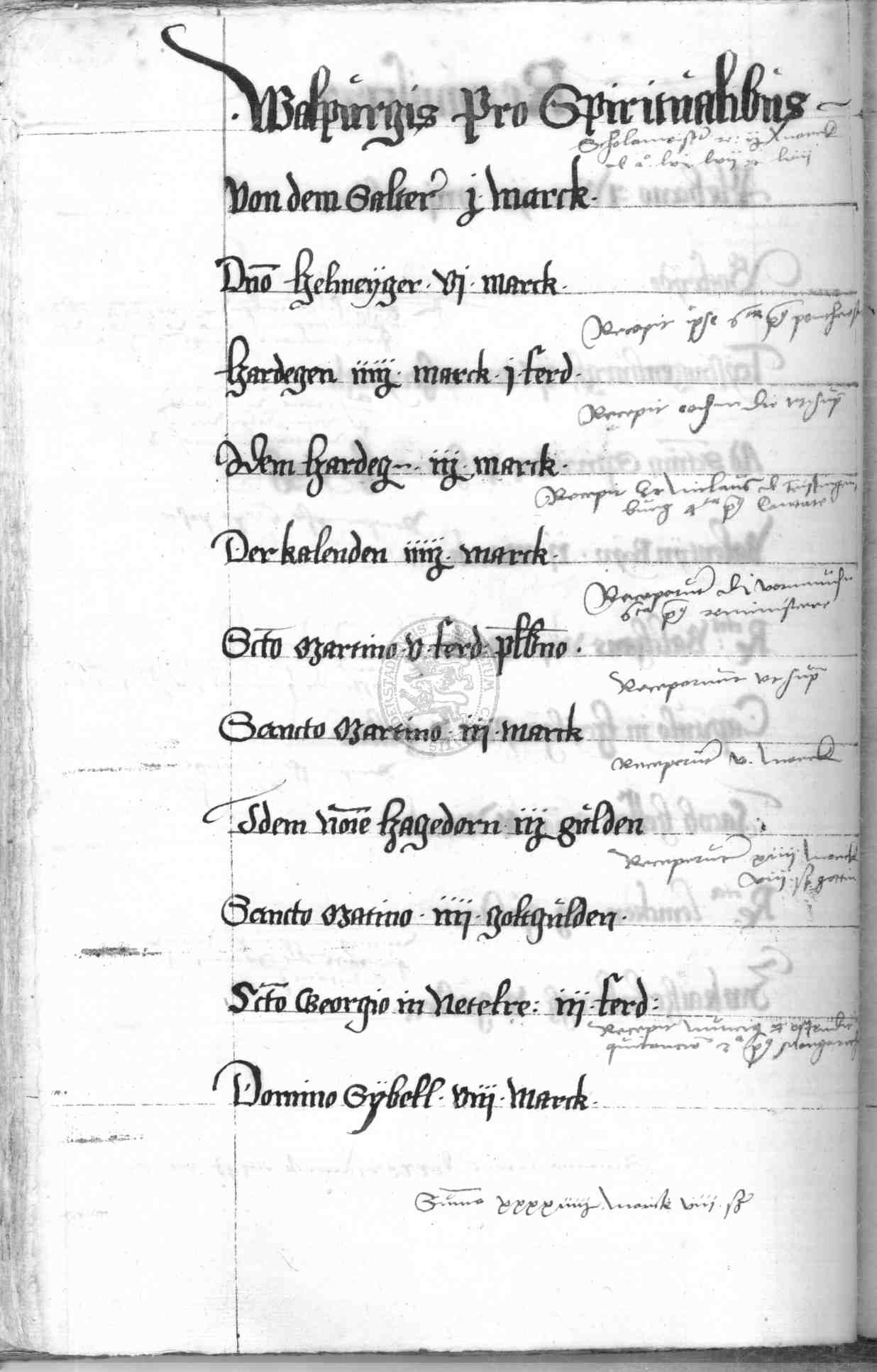 | Rubrum: | Walpurgis pro spiritualibus |