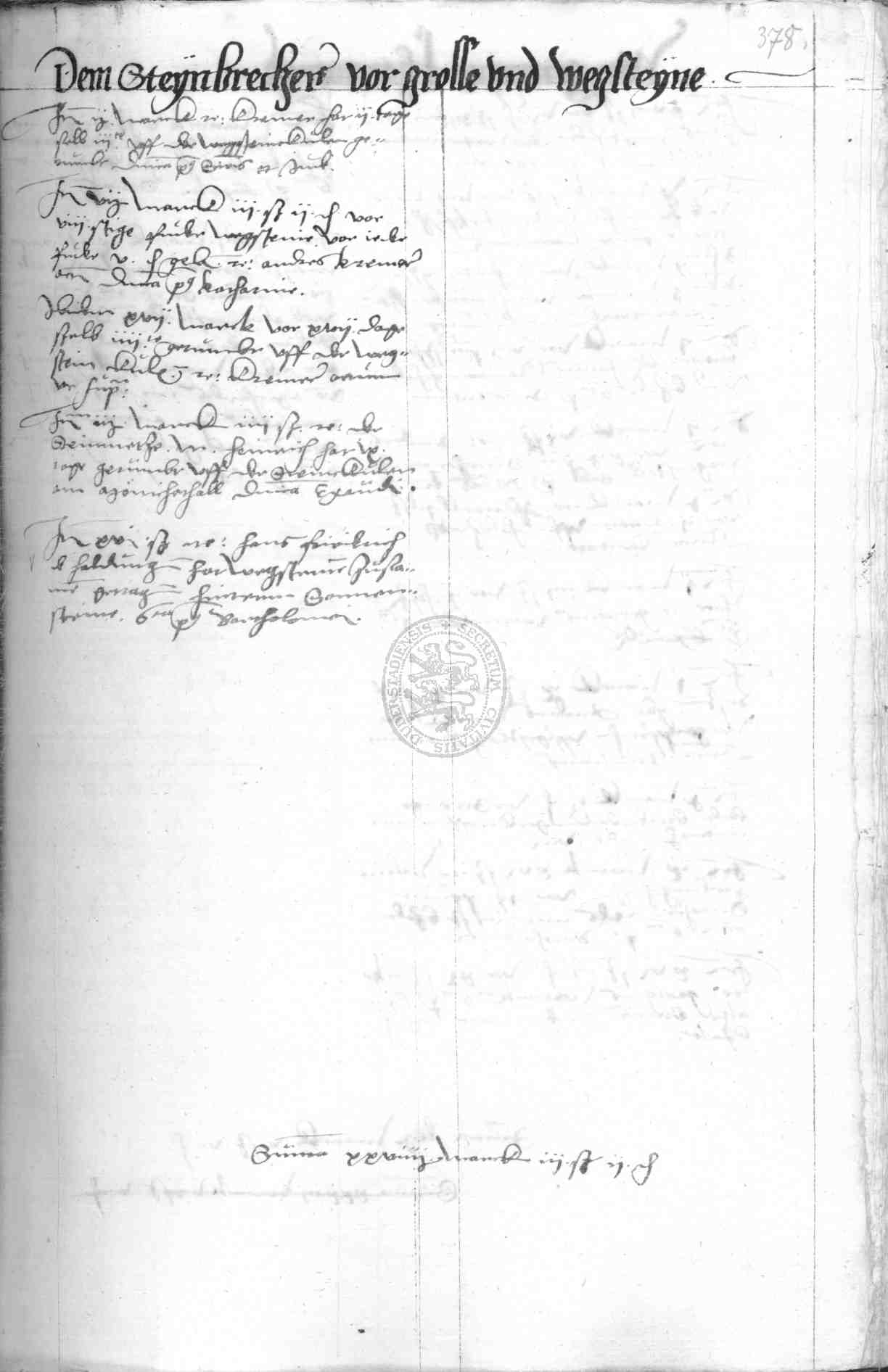 | Rubrum: | dem steynbrecher vor grosse und wegsteyne |