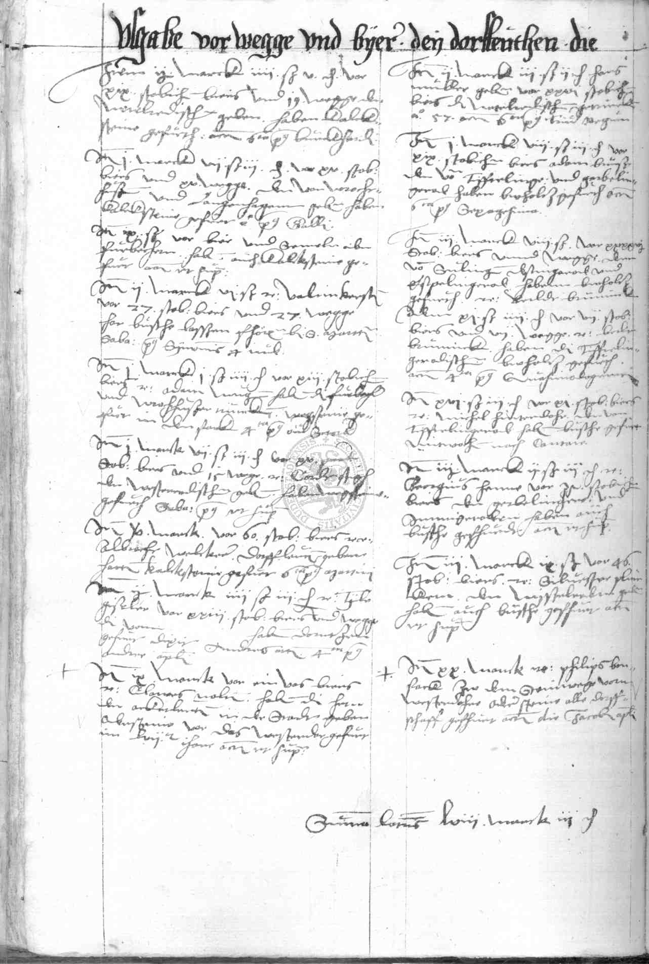 | Rubrum: | uthgave vor wegge und byer den dorfleuthen die steyne busche und weghholtz gefurdt haben |